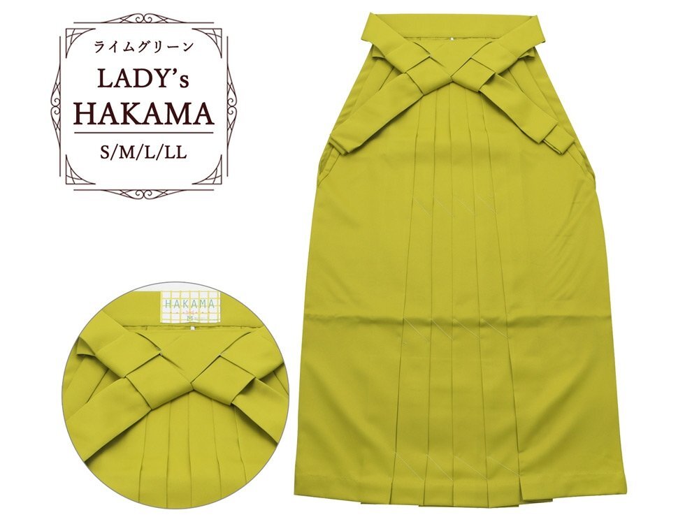 ◆袴 女性用◆ 無地 はかま 単品 ライムグリーン LLサイズ 大きいサイズ hs-113 【レディース 行灯袴 スカートタイプ 卒業式 謝恩会】