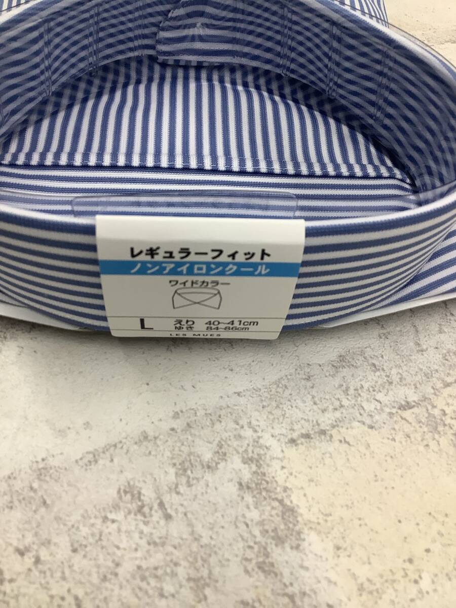 新品未使用★41-86長袖Lサイズ ★ネイビー×白 ★ストライプ柄、ワイドカラー定価4,990円スーパーストレッチ ノンアイロン