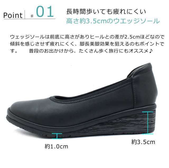 シンプルなデザインのウェッジソールのコンフォートパンプスです。