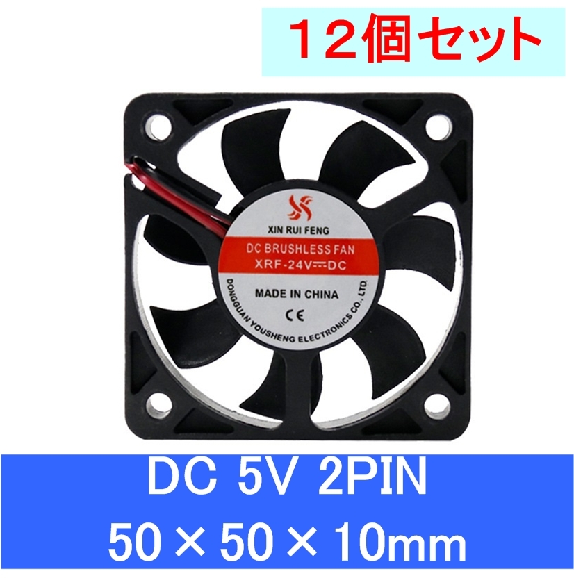 12個セット 小型 クーリングファン V5V 50×50×10mm 501005 2ピン(冷却 DC クーラー 空冷 USB 送風 排気 換気 ファン,,