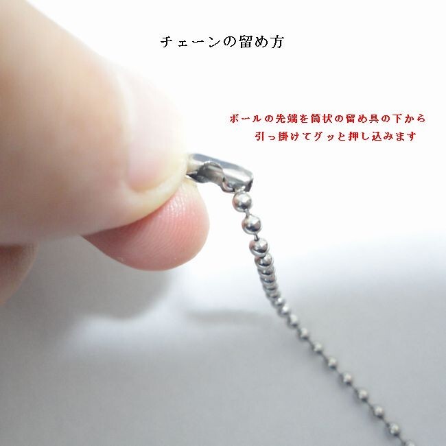 留め具はボールを筒状部分に引っ掛けてからはめる、コネクタータイプです。