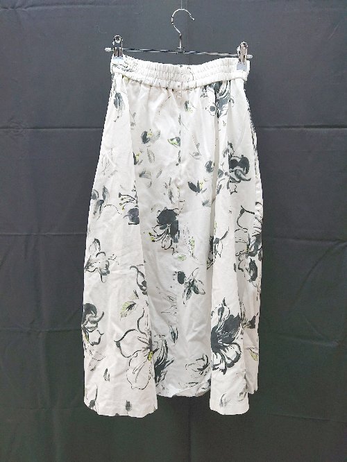 ◇ 美品 LAGUNAMOON メルトン生地 ポケット有 ボタニカル 花柄 ロング フレア スカート サイズS ホワイト レディース E