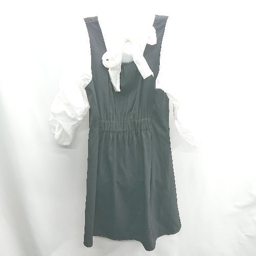 ◇ ⊇ MAJESTIC LEGON Vネック バックリボン 長袖 ミニ丈 ワンピース サイズM ブラック ホワイト レディース E