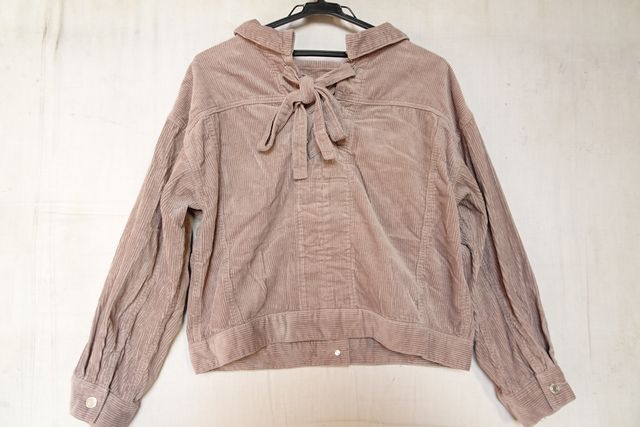COLZA/コルザ/ハニーズ/コーデュロイジャケット/ジージャン/後首ぐりレースアップ/抜き襟/スモーキーパープル/くすみ色/Mサイズ(11/22R6)