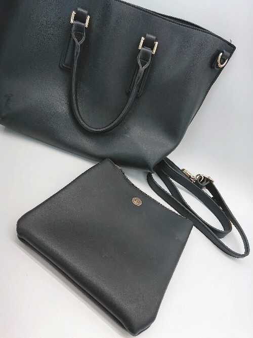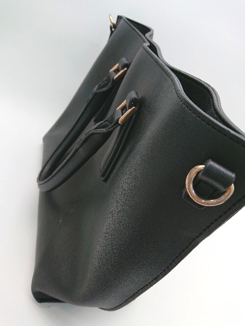 ◇ rienda 着脱可能ポーチ付き 2way ショルダー トートバッグ ブラック レディース E