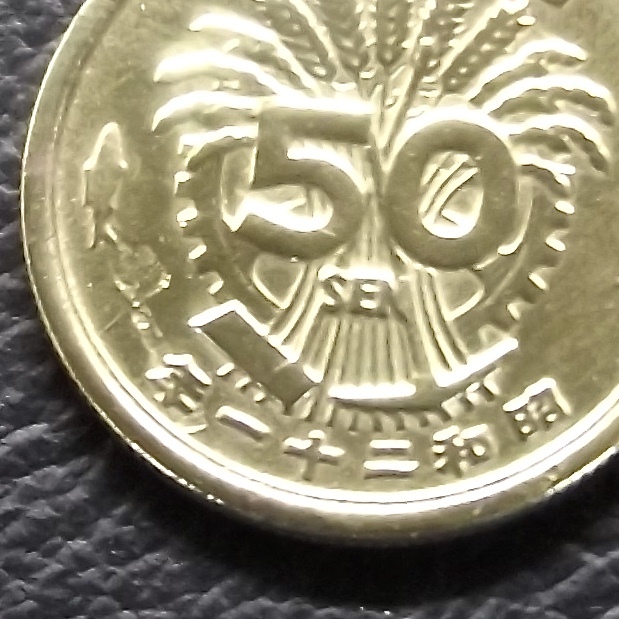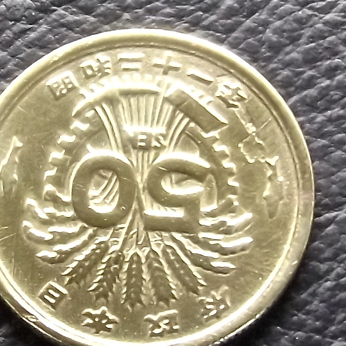 へゲ エラーコイン 大型50銭黄銅貨  昭和21年 送料無料 (19356)硬貨 古銭 アンティーク 日本 貨幣 近代 コレクション