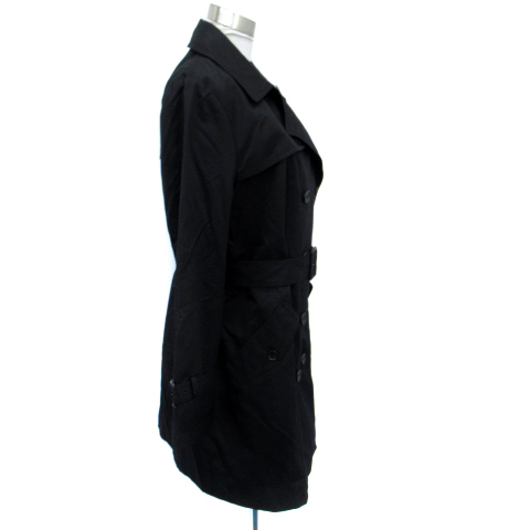 トランスワーク TRANS WORK トレンチコート スプリングコート ロング丈 ライナー付き 48 M 黒 ブラック /SM37 レディース