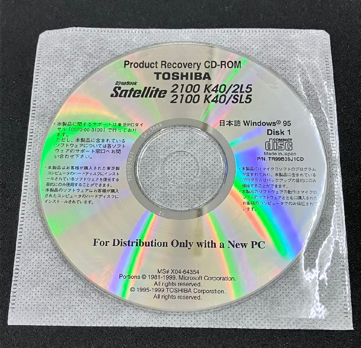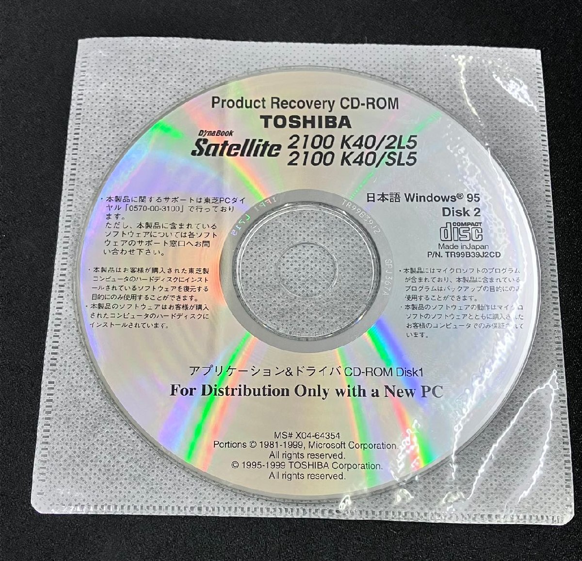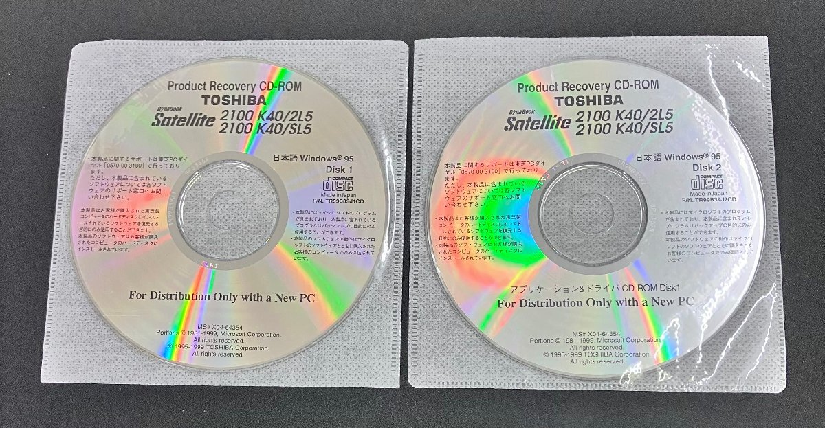 | 商品名 | TOSHIBA Dynabook Satellite 2100 K40/2L5,2100 K40/SL5 アプリケーション&ドライバ&リカバリCD-ROM Windows 95 |