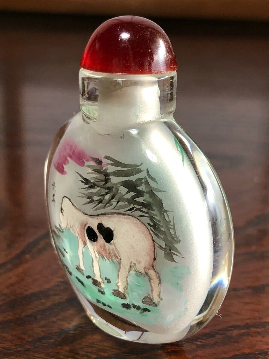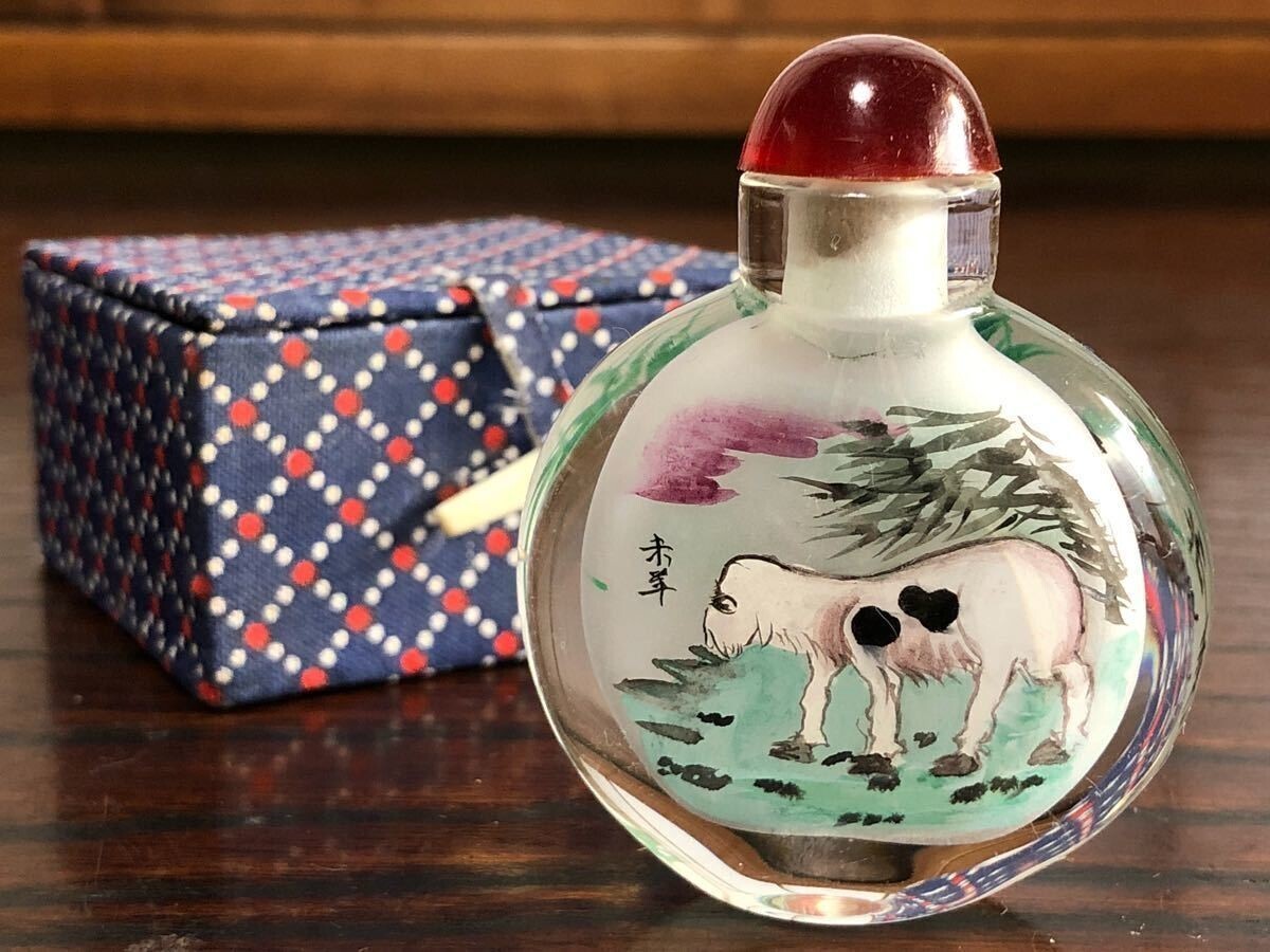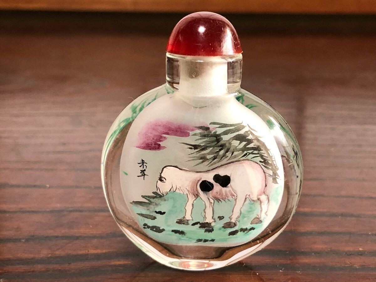竹の図柄と未(羊)?の描かれた鼻煙壺