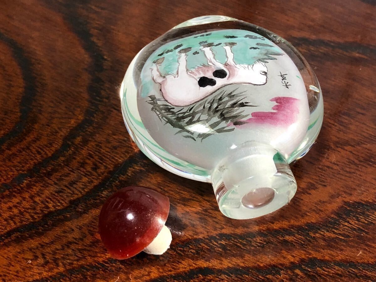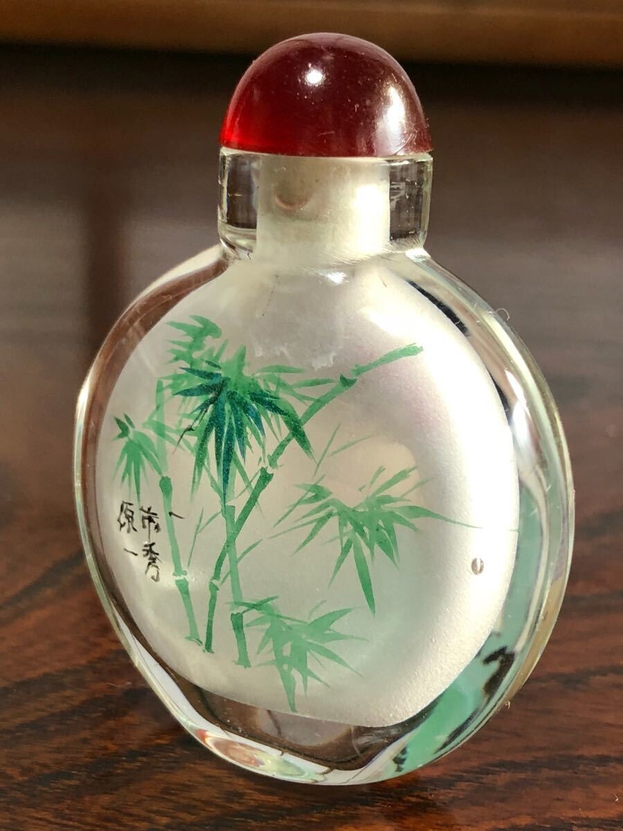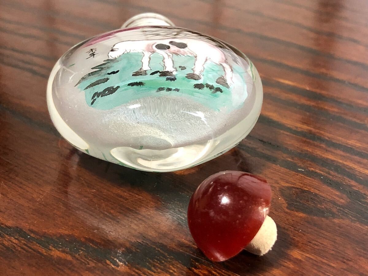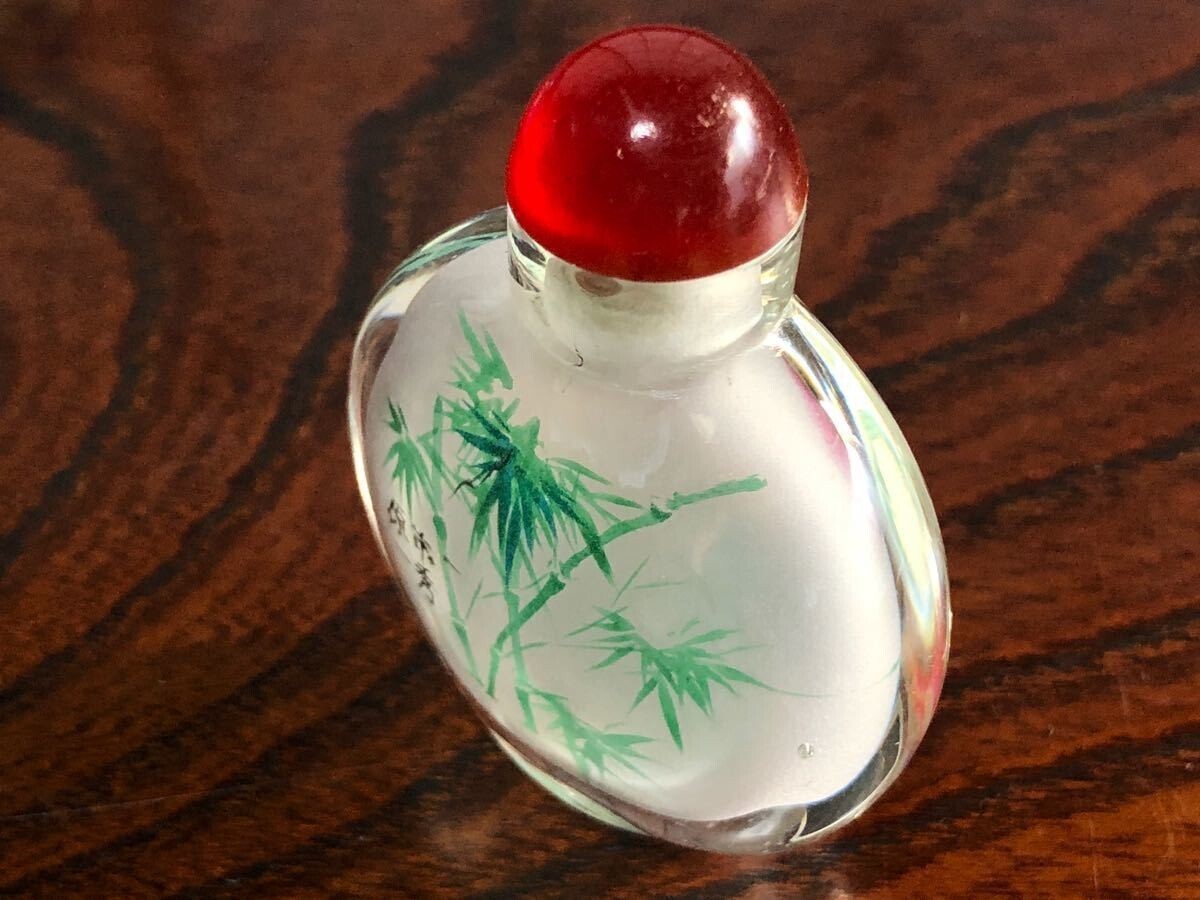 竹の図柄と未(羊)?の描かれた鼻煙壺
