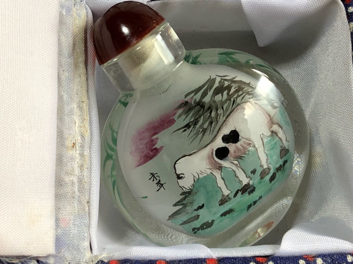 【鼻煙壺】 未使用 アンティーク品 ガラス製  市原秀一  化粧箱入  I1026H