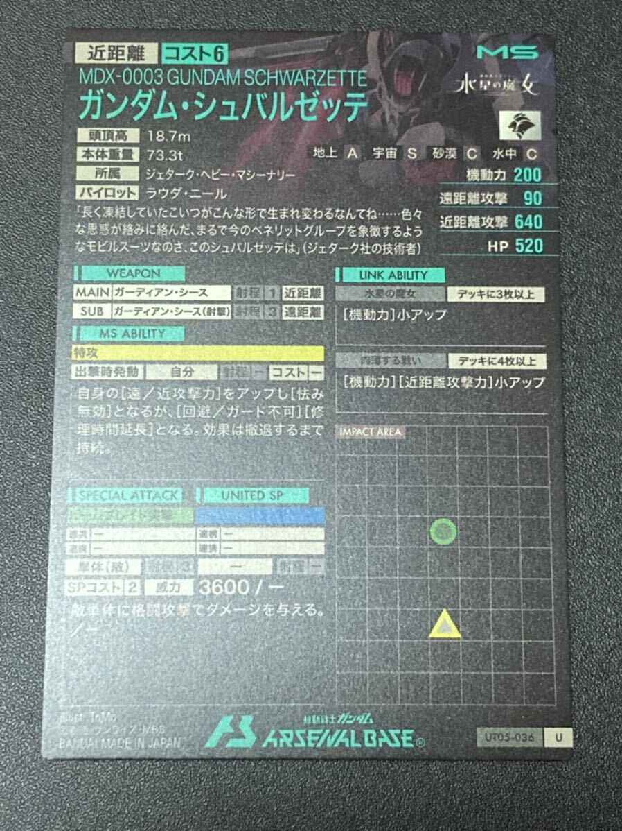 【商品説明】★即決★ 機動戦士 ガンダムアーセナルベース UNITRIBE 5弾★U★ガンダム・シュバルゼッテ★UT05-036★SEASON 05 Uレア 水星の魔女 MS