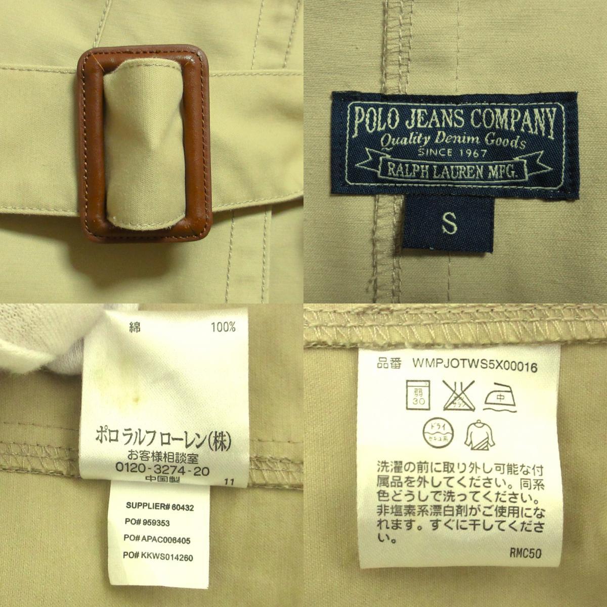良品 POLO JEANS COMPANY ポロジーンズカンパニー 比翼仕立て ロング丈 ベルテッド トレンチコート S ベージュ