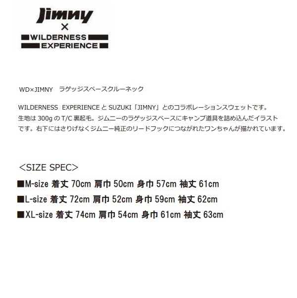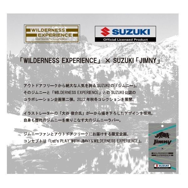 WILDERNESS EXPERIENCE と SUZUKI「JIMNY」とのコラボレーションスウェットです。