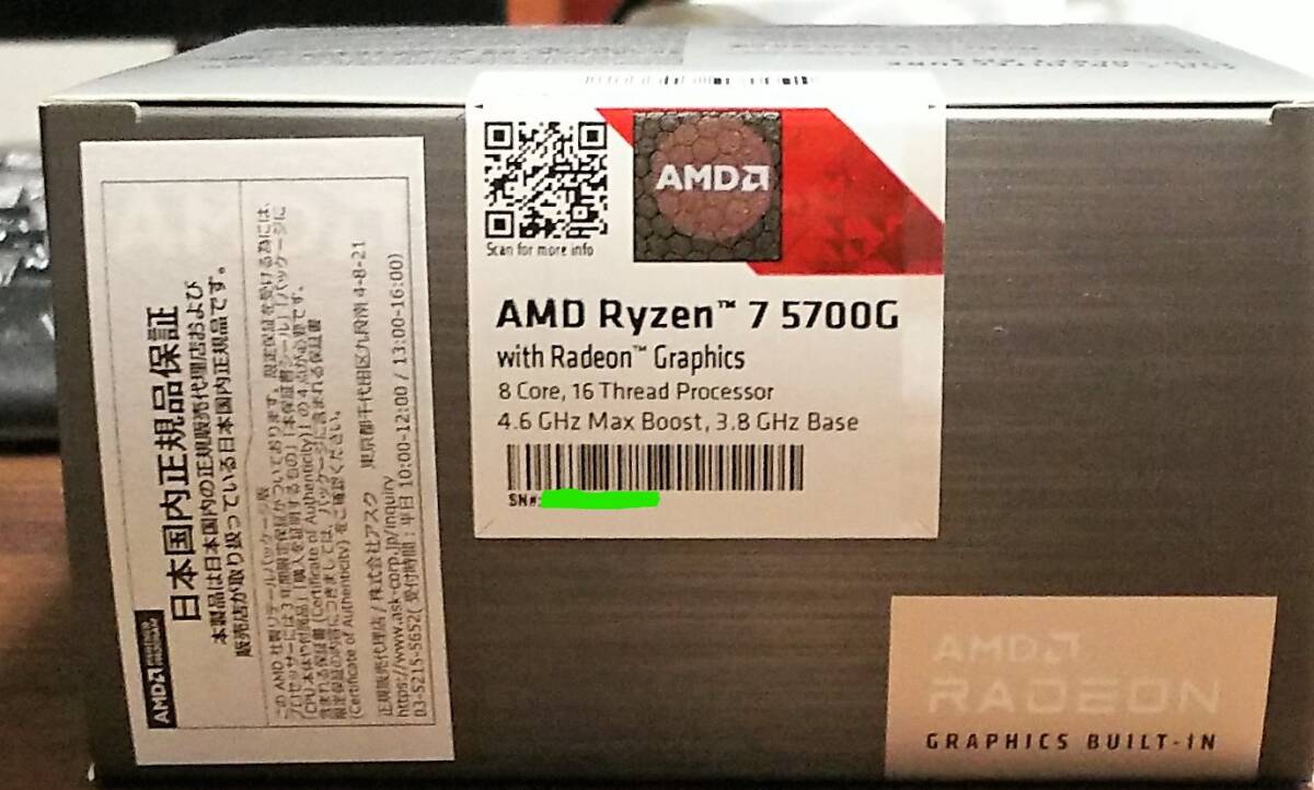 AMD ryzen7 5700G BOX(国内正規代理店品)