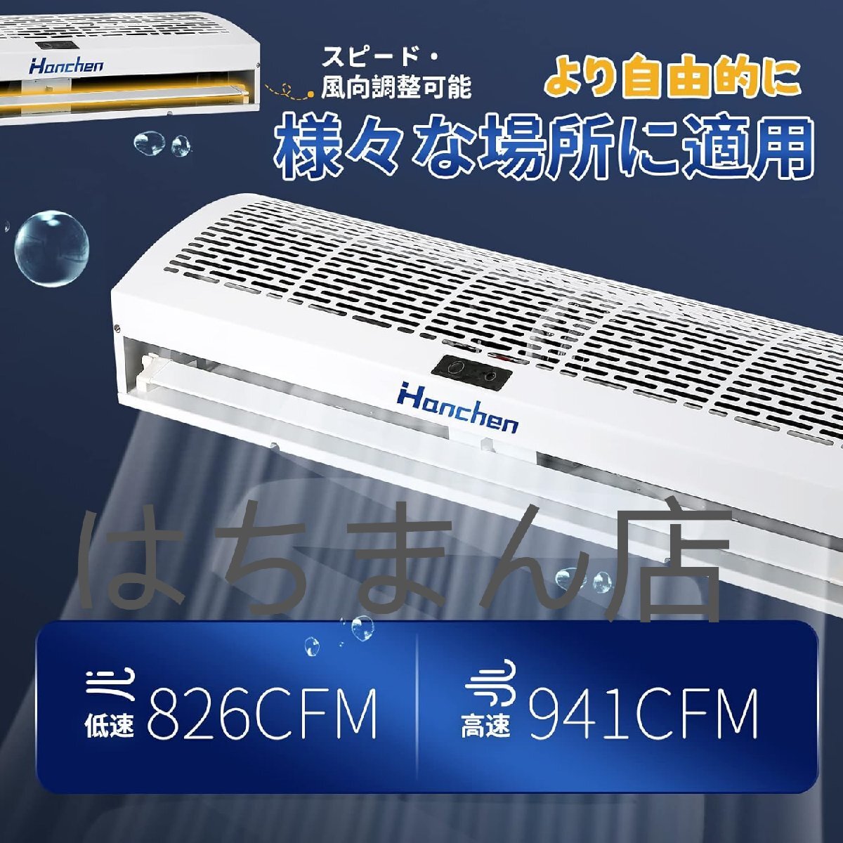 エアーカーテン 900mm 826/941CFM風量10-14m/sスピード調整可能 リモコン/マグネット吸着制御 換気扇 消費電力の削減/電気代を節約する