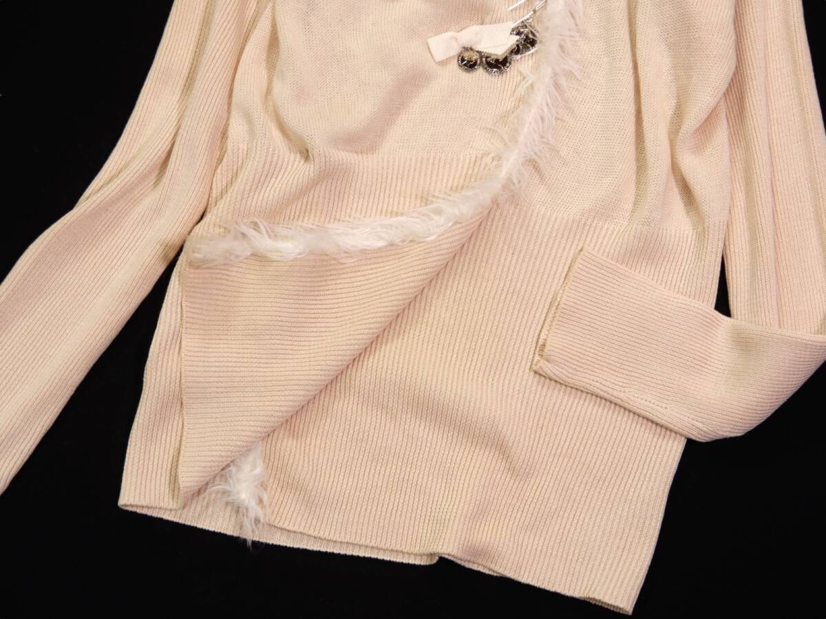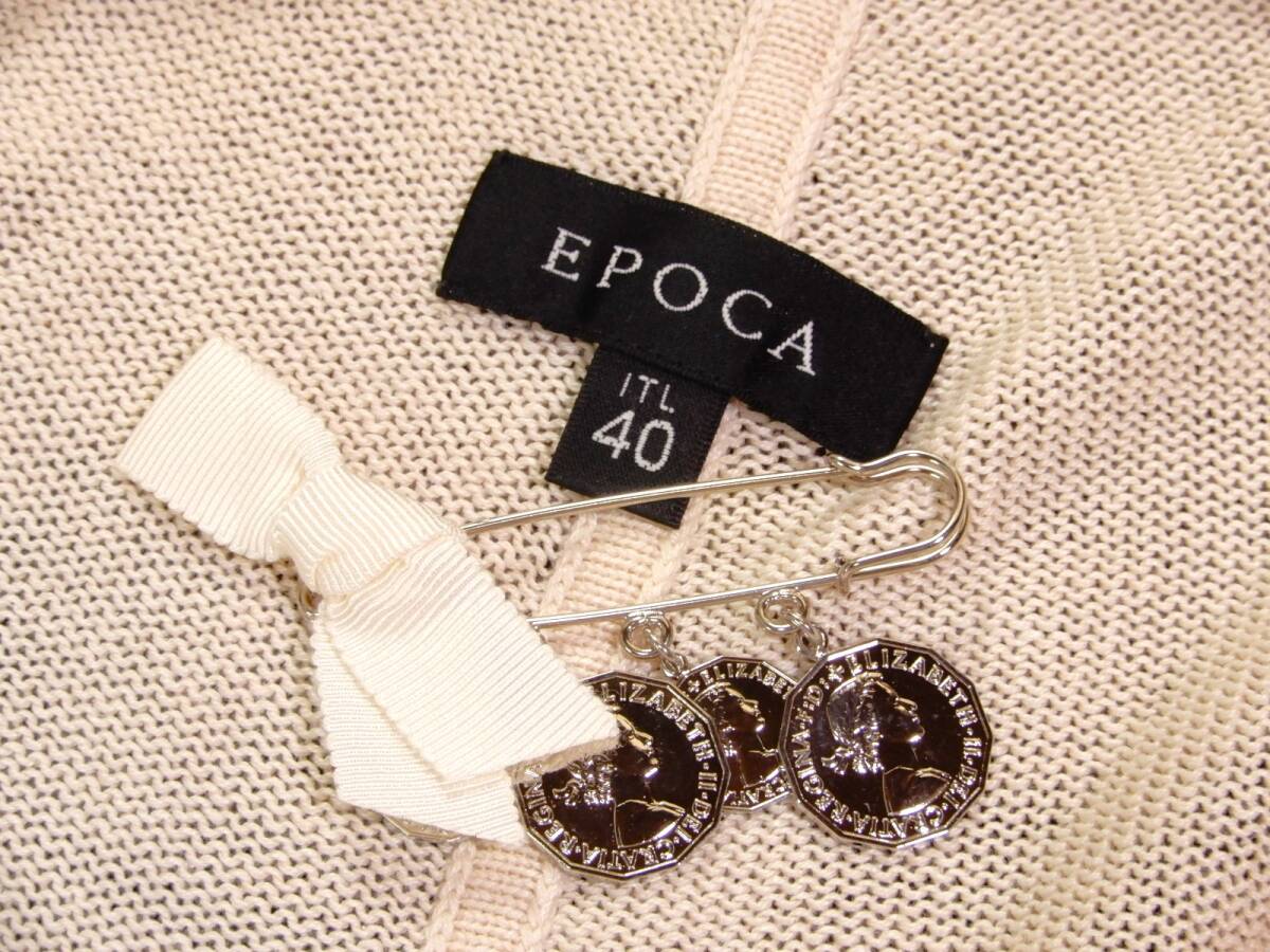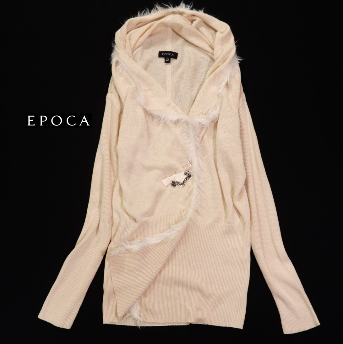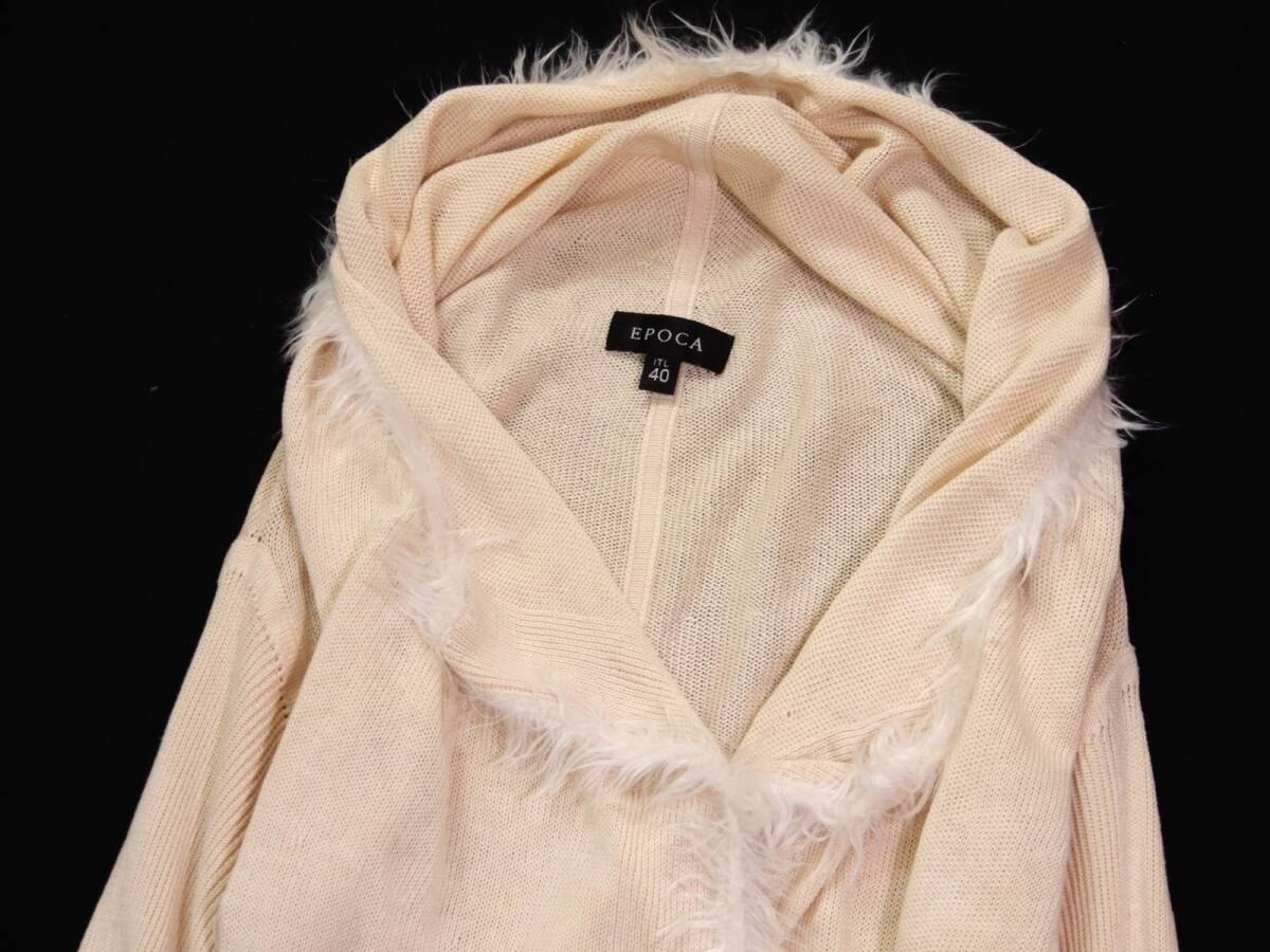 エポカ カーディガン サイズ表記:40 お色:クリーム系 素材:本体 絹49 麻47 レーヨン4 トリミング部 ナイロン100% 平置き実寸で 肩幅41 身幅43 着丈64 袖丈56㎝位です。 |