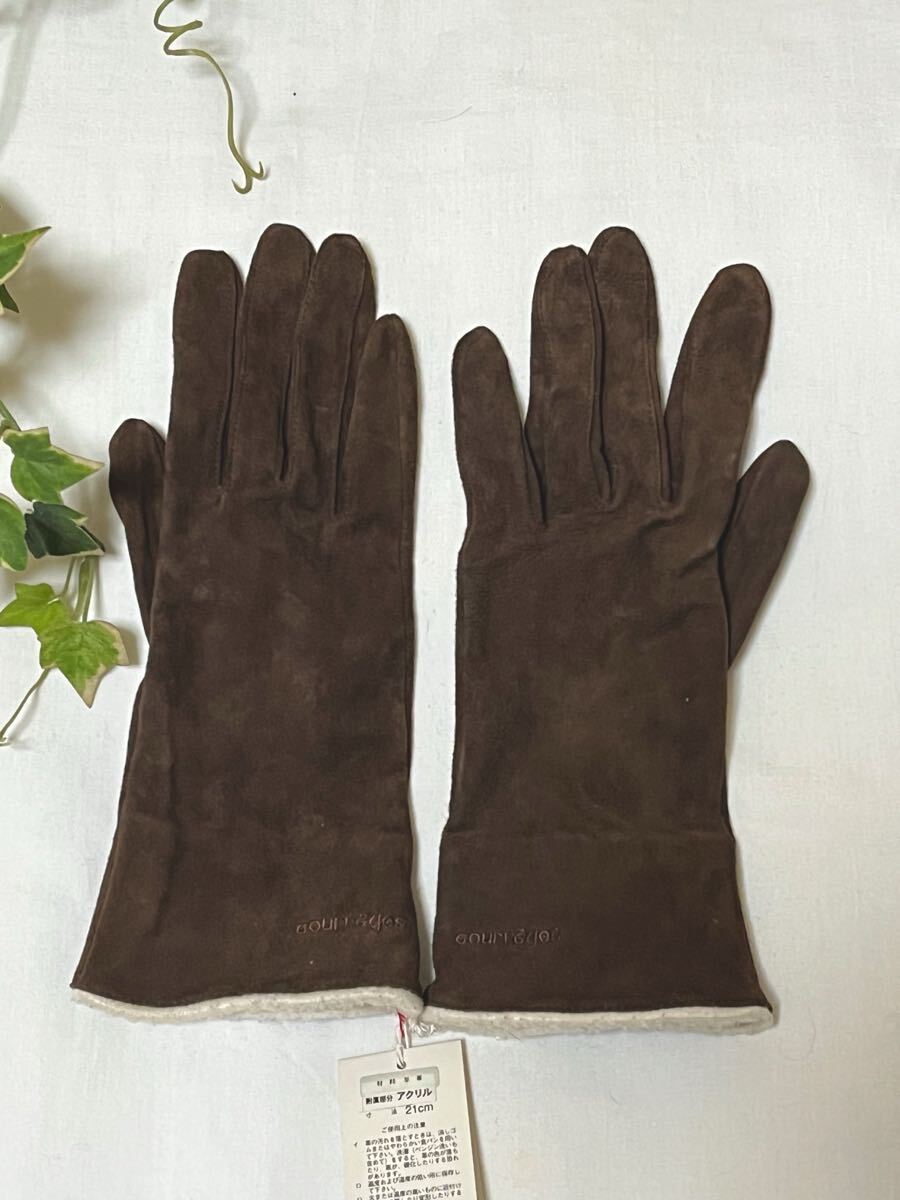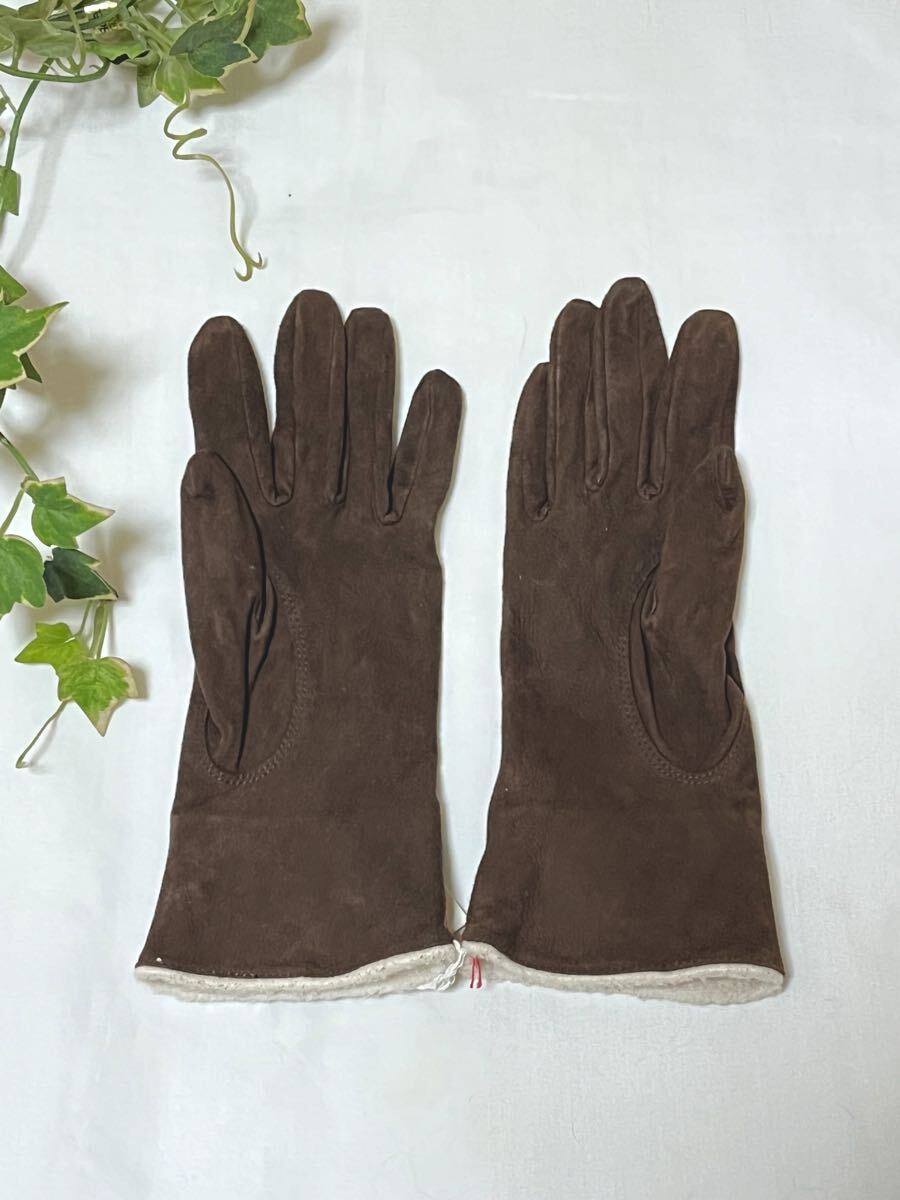 ★未使用 courreges クレージュ スエード 手袋 羊革 ブラウン★
