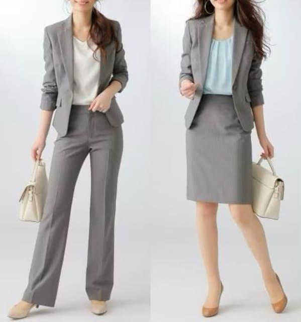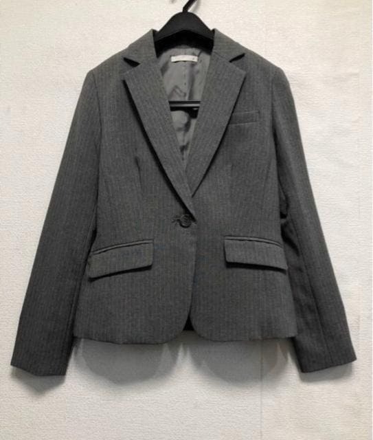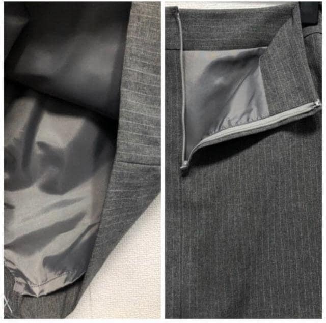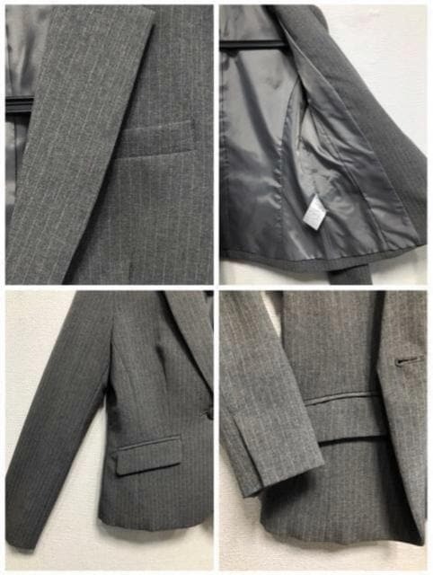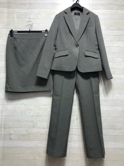 新品☆11号M♪グレー系ストライプ♪パンツ・スカート付スーツ3点セット〇A790