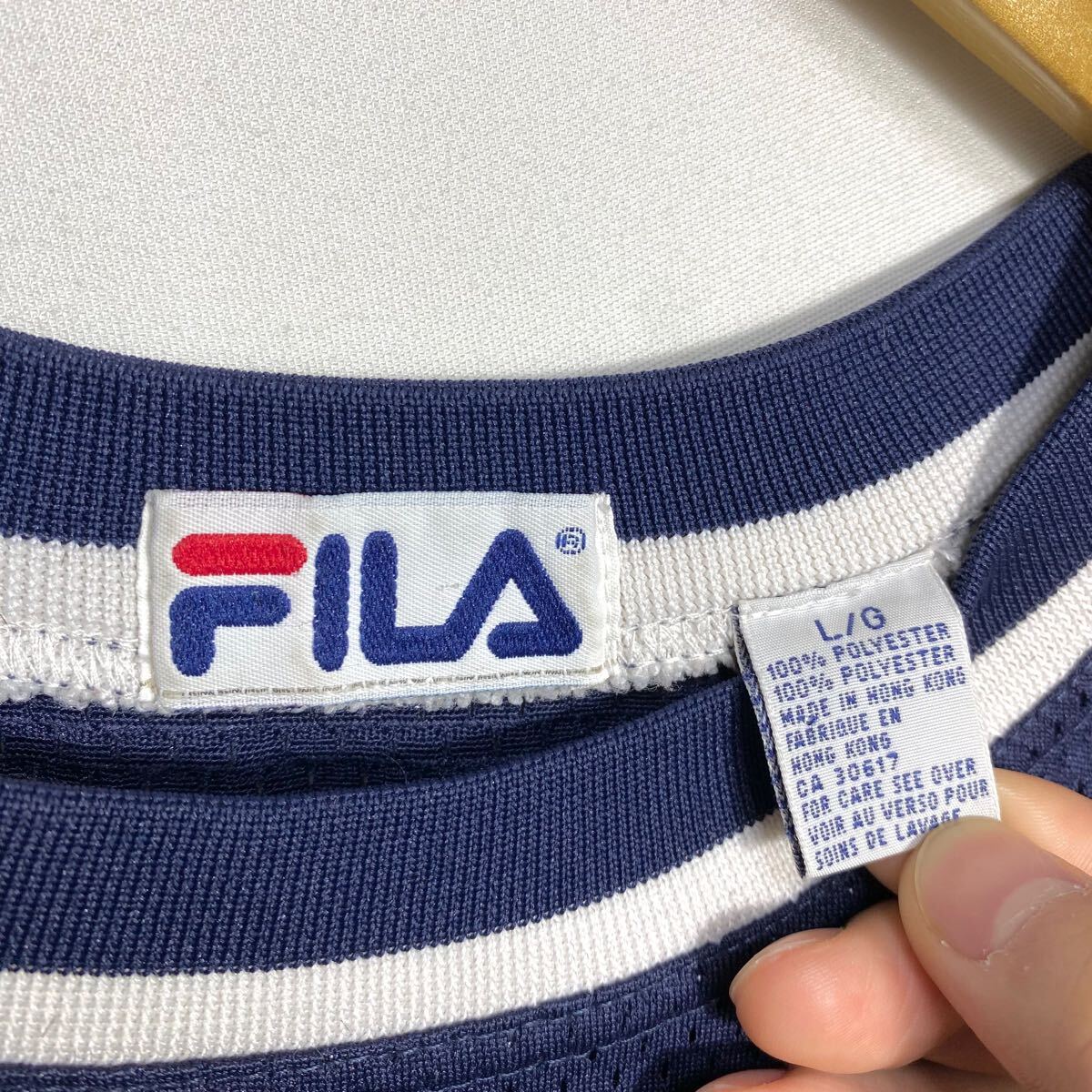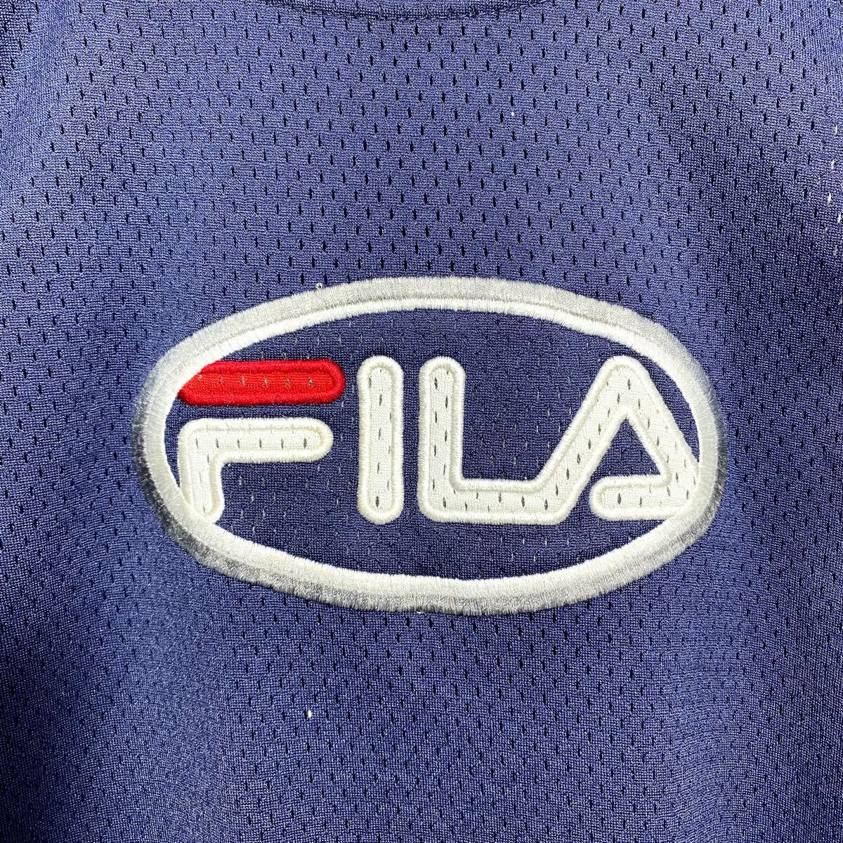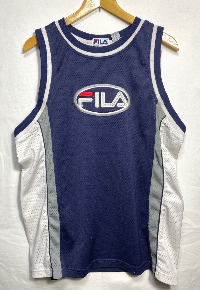 ■ 90s 90年代 ビンテージ FILA センター 刺繍ロゴ メッシュ地 バスケ ユニフォーム タンクトップ サイズL ネイビー ストリート スポーツ■
