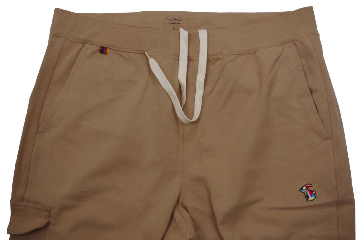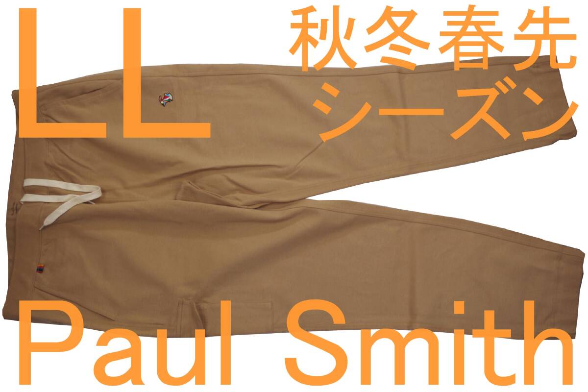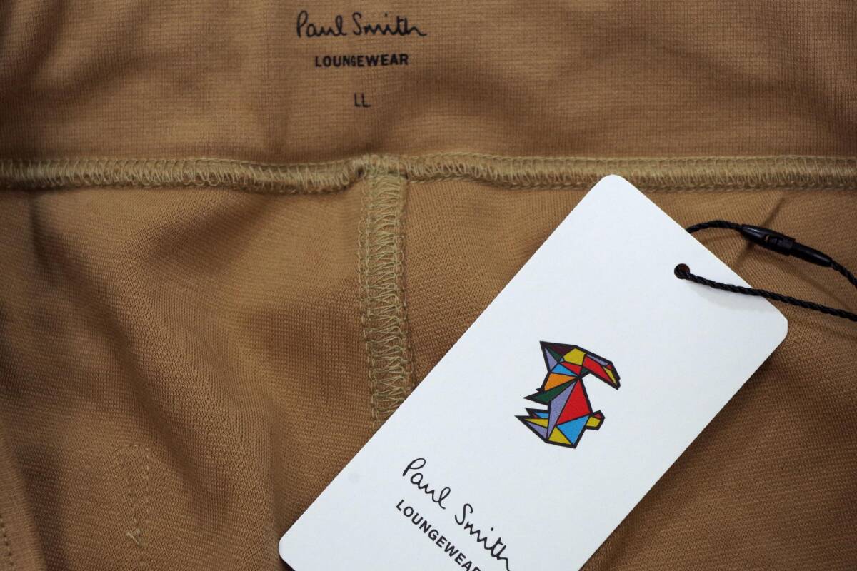 ■ポールスミス Paul Smith LOUNGEWEARの男性用リラクシングパンツ(ホームウェア)、新品です。サイズはLL、ウエスト94-104cm、身長175-185cm、平置き実寸で総丈約105cm、股下約78㎝。前閉じ。両サイドと右後ろ、右側面ポケット付き。素材は綿80%・ポリエステル15%・ポリウレタン5%。目安として主に秋・冬・春先シーズンの長い時期でお使いいただける生地感です。色はベージュ系。正規ライセンス(株)ロイネ扱い品。税込定価10,450円です。