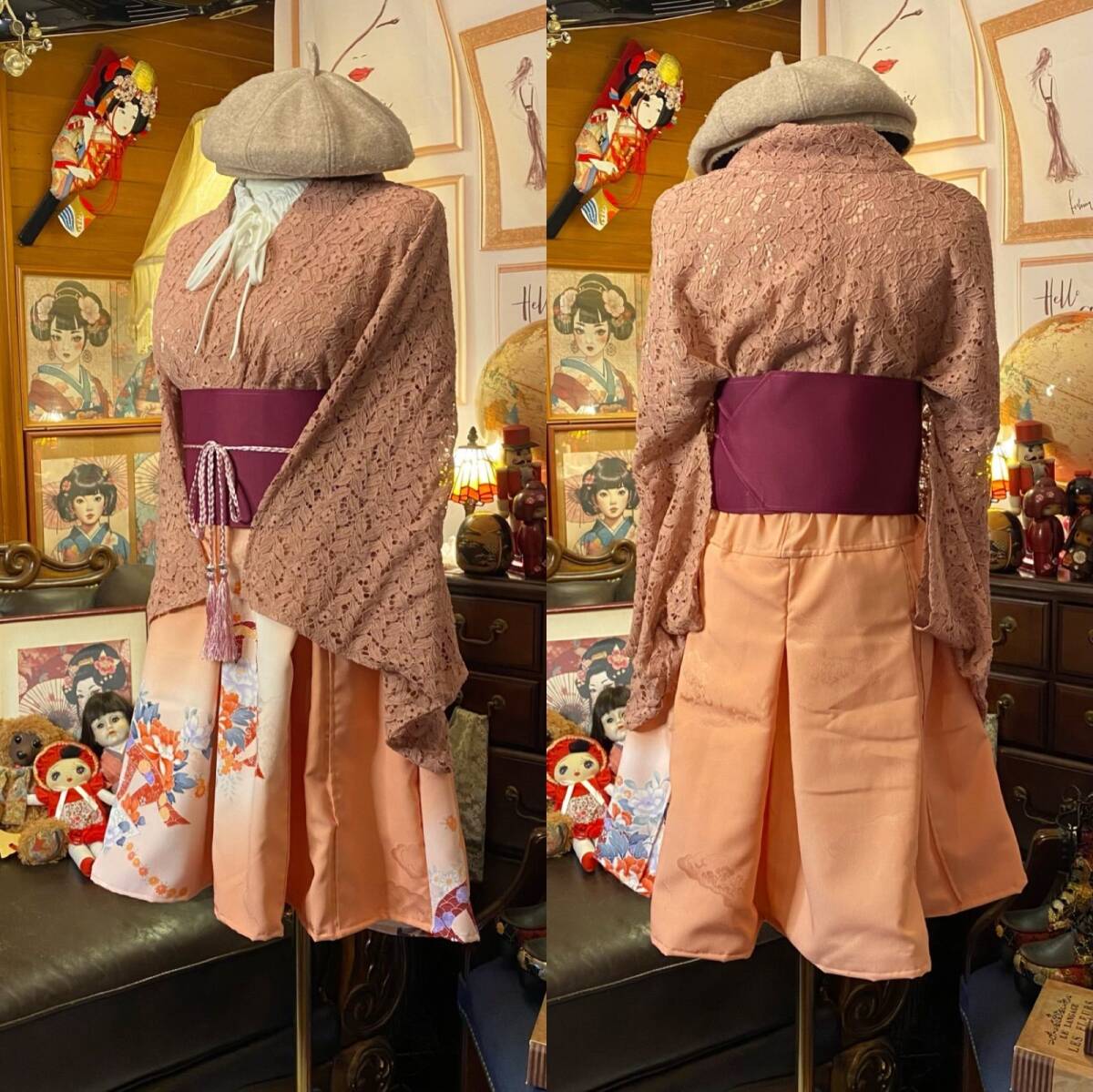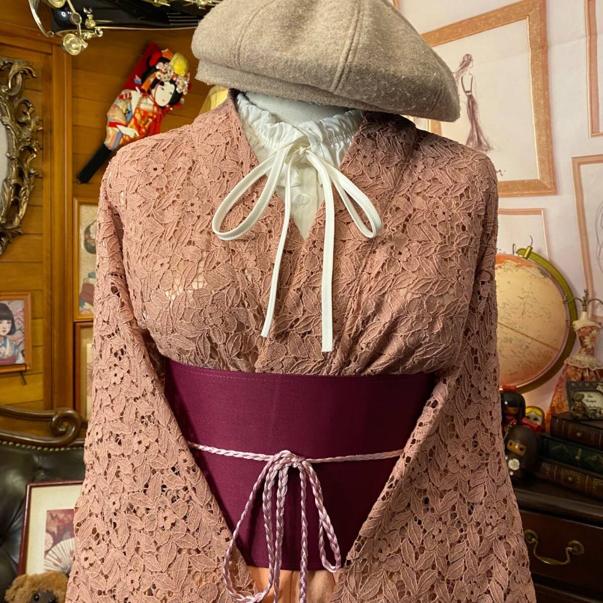 ○状態→新品未使用のレース浴衣と古着の着物をリメイクしています。トルソー試着時あまり気にならないと感じましたが、汚れ・小キズやしわ、色落ちあり。