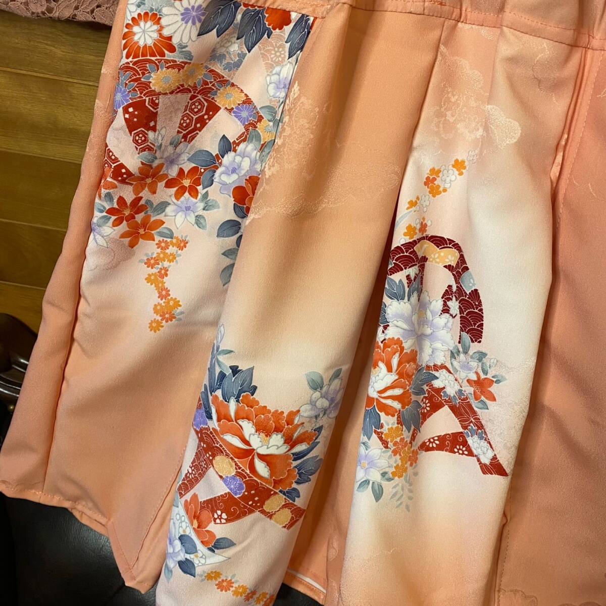 スカート部分に広がる伝統的な扇子モチーフと、繊細な花々が織りなすデザインは、
