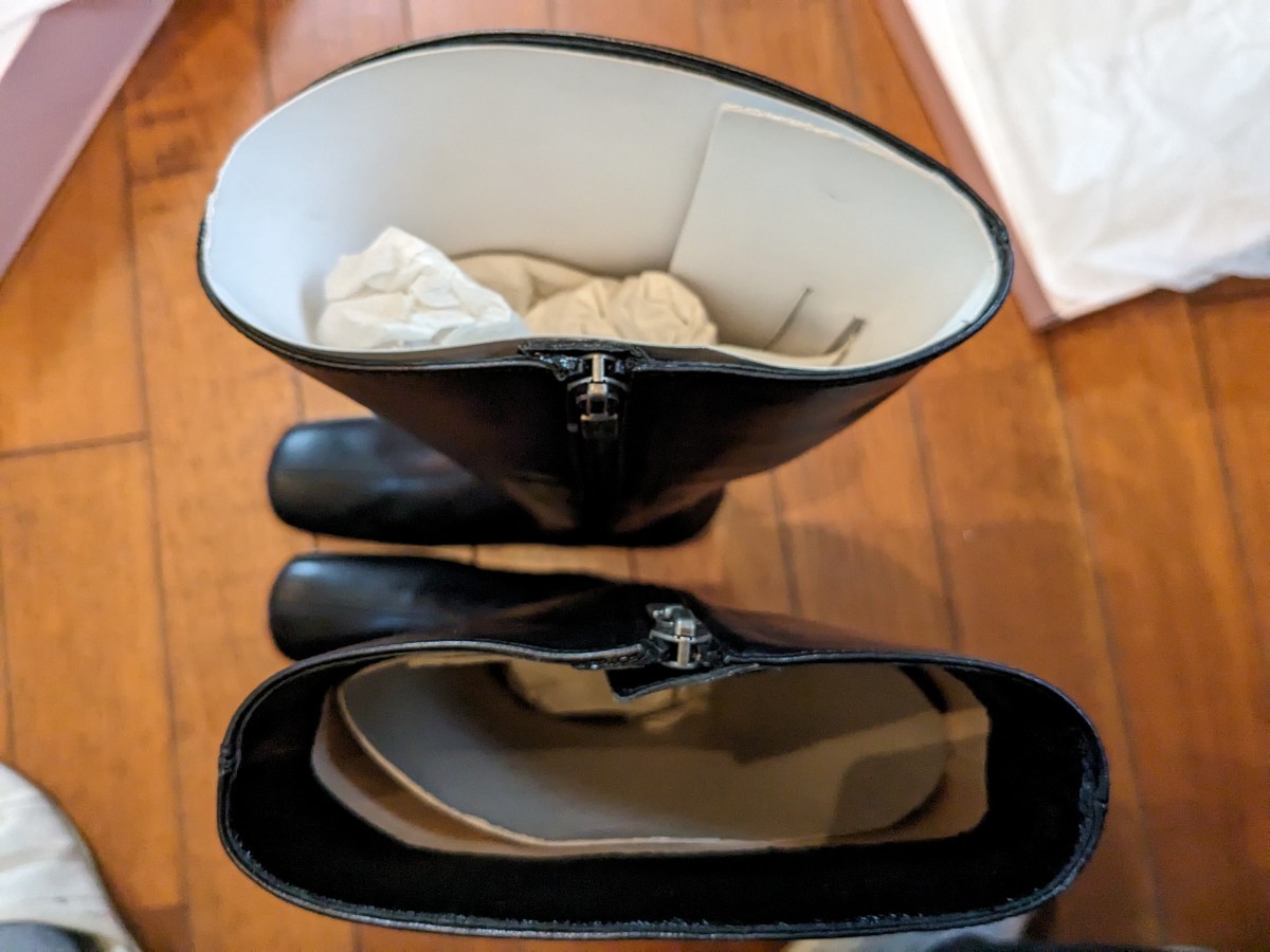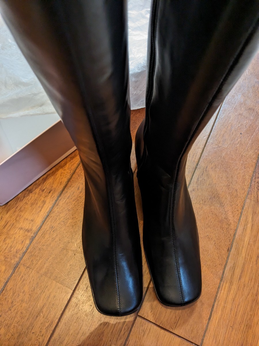 サイズ24センチ 素材 革 色 黒 ヒールの高さ約6センチ 1番上の筒の周り 約37センチ