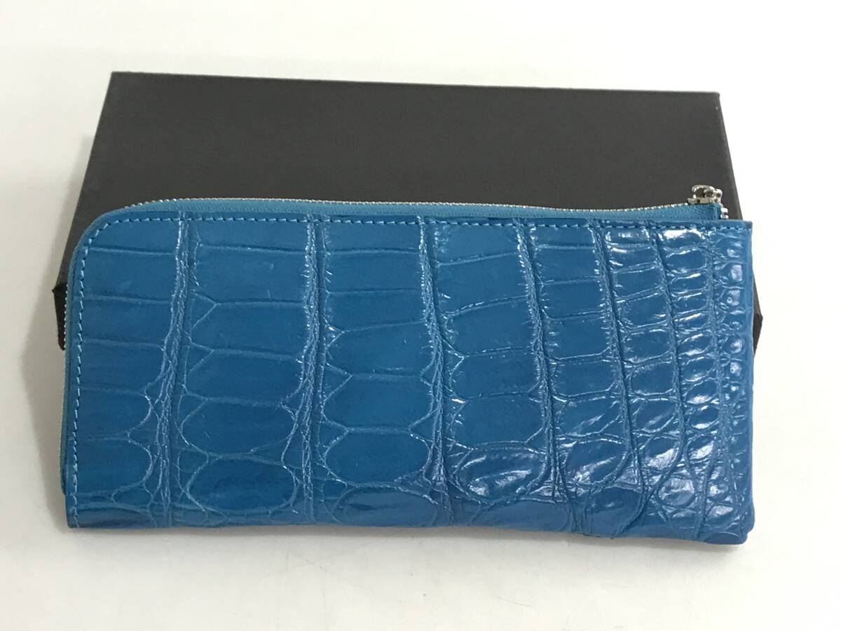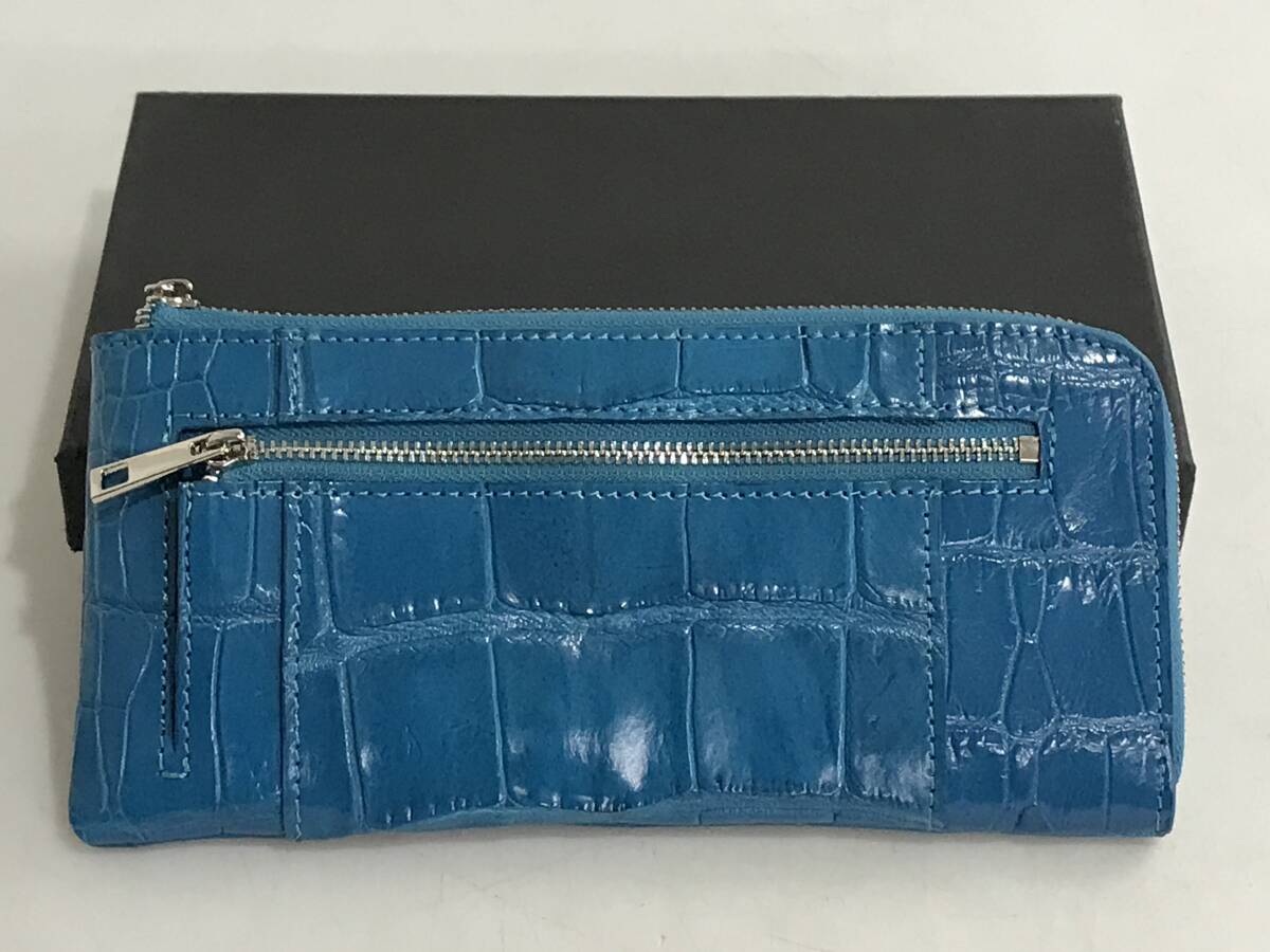 商品名 | クロコダイル 長財布 L字ファスナータイプ ワニ革 レザー ブルー系 専用袋・箱付き 未使用品 |