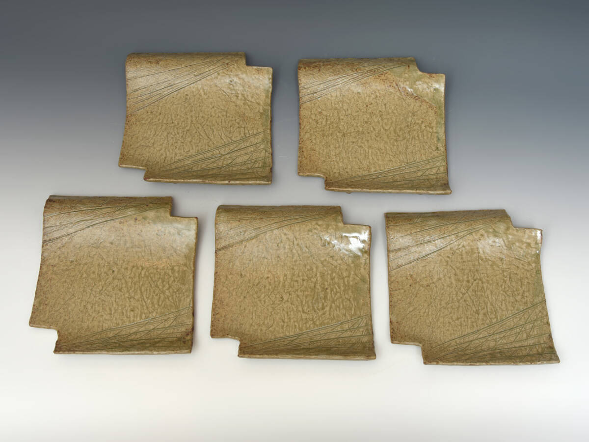 在銘 魯山人写 色紙重 灰釉 板皿 組皿 向付 銘々皿 陶磁器 会席 懐石道具 陶磁器 料理皿 |