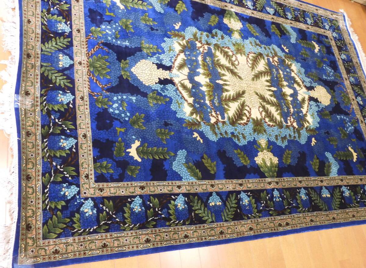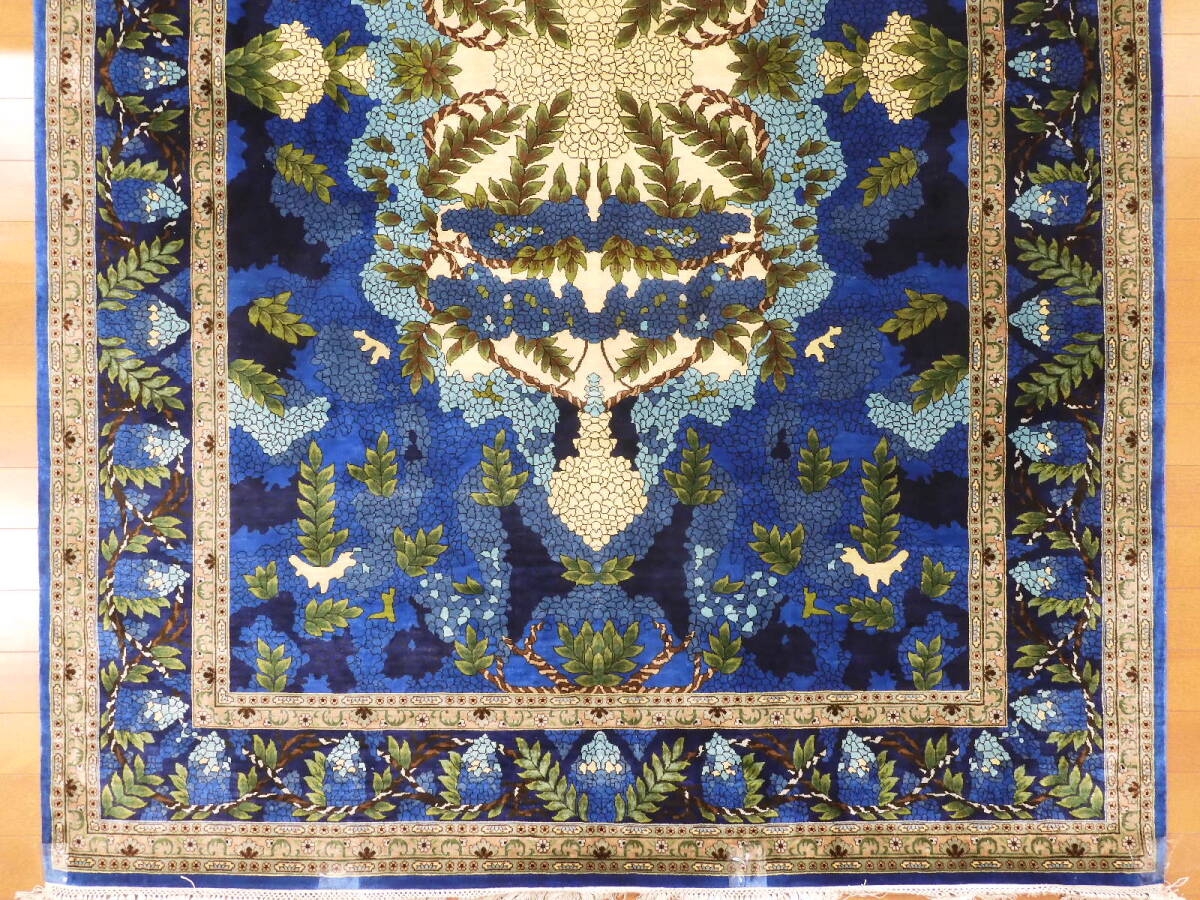 <銀の斧>逸品 上海シルク段通・260段・約139×201cm・ウィリアム モリス デザイン・オイスターベイ・豊穂のぶどう畑・MORRIS RUGS LONDON