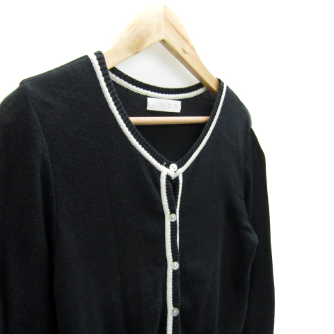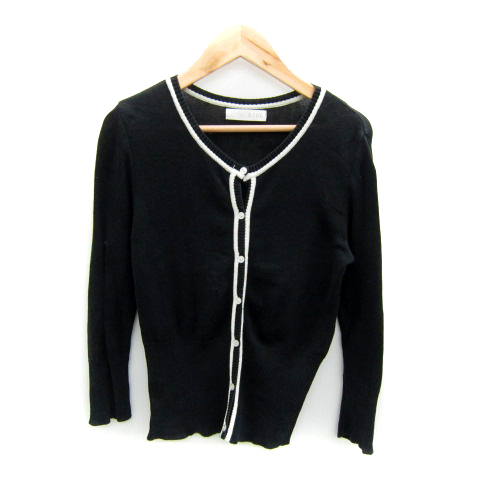 オゾック OZOC カーディガン ミドル丈 ラウンドネック 七分袖 無地 38 M 黒 ブラック /SY7 レディース