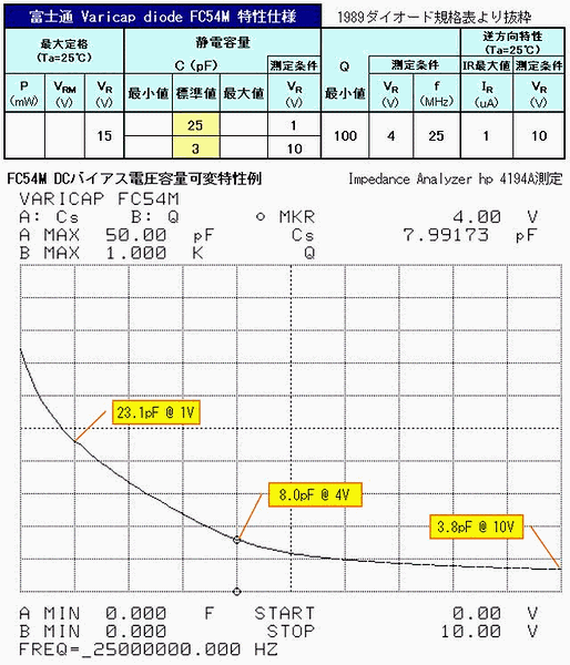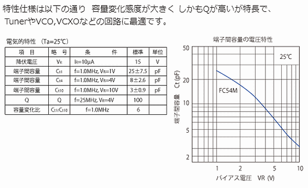 富士通 FC54Mは、昭和ラジオ世代に名を馳せた定番の可変容量ダイオード です。