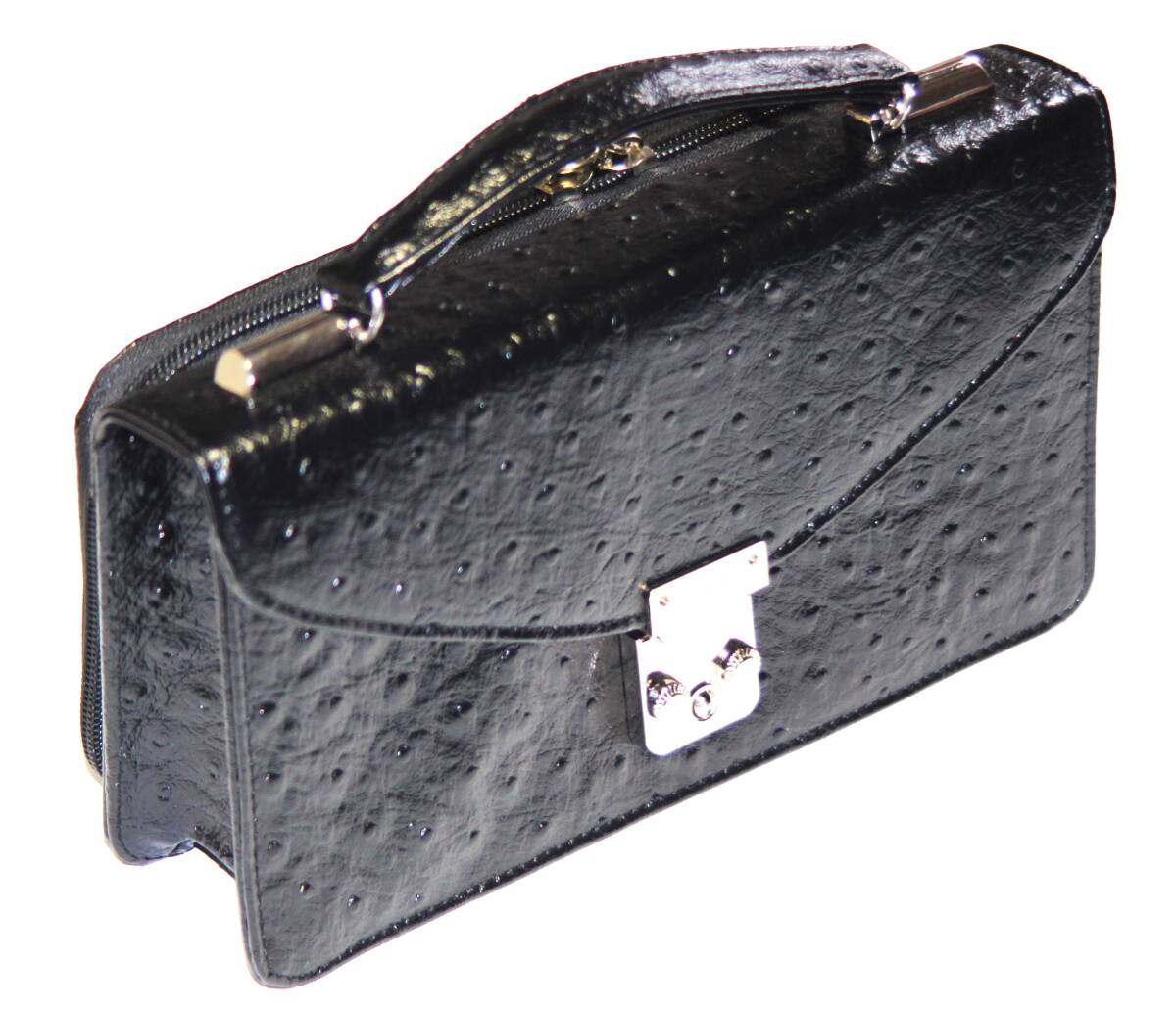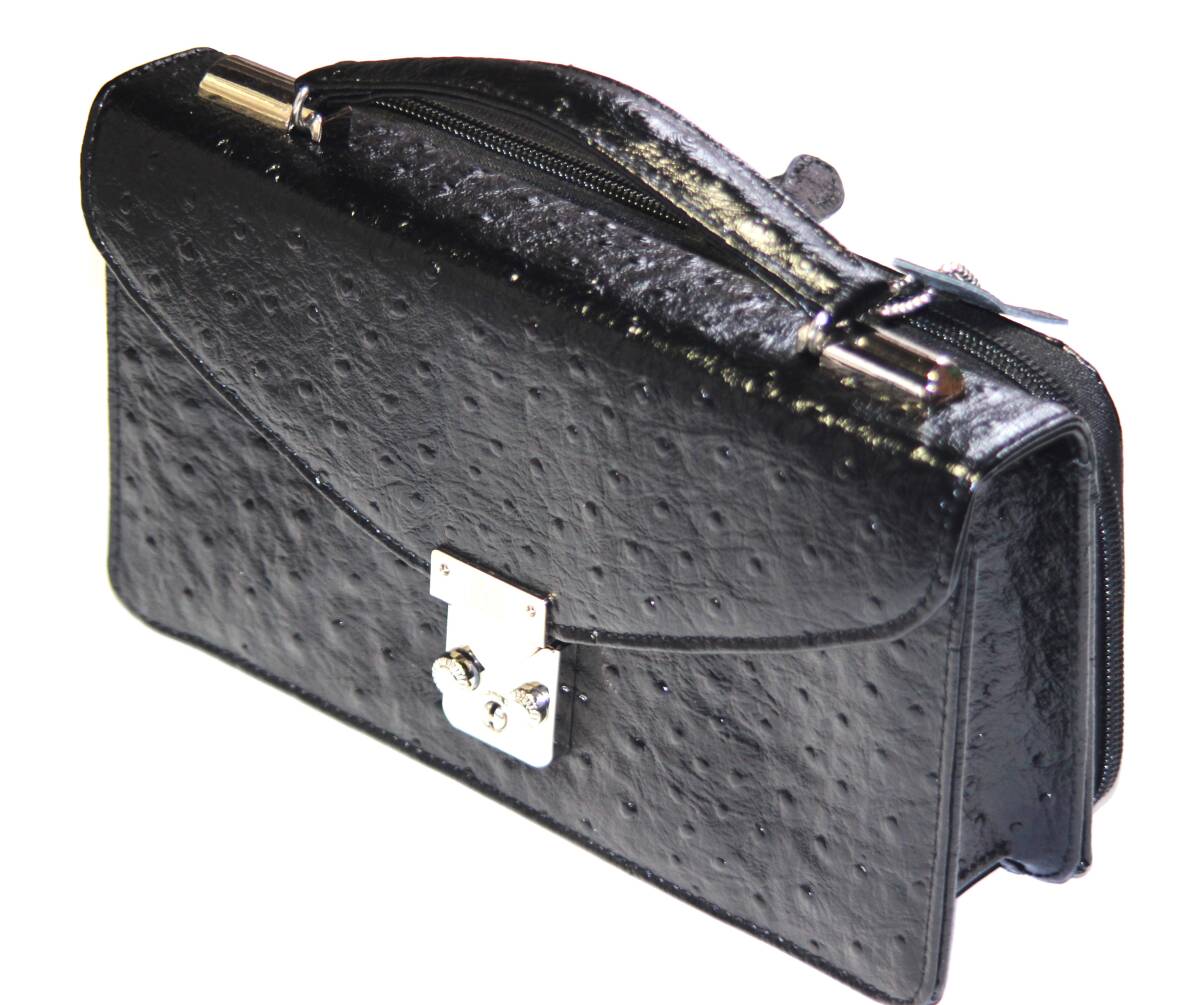 大人気 定番 牛革 オーストリッチ型押し 背面財布機能付き 鍵付き セカンドバッグ