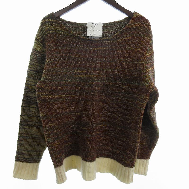 ディガウェル DIGAWEL ニット セーター 長袖 総柄 ウール 茶 ブラウン 2 M位 メンズ