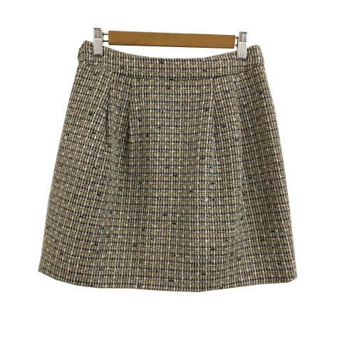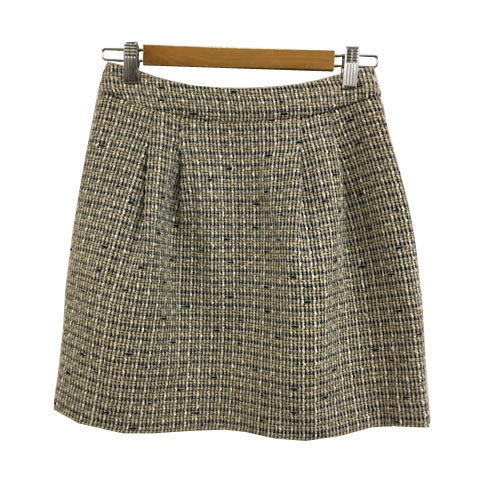 ジュエルチェンジズ Jewel Changes アローズ スカート タイト ミニ 総柄 ツイード タック 36 黒 ベージュ ブラック レディース