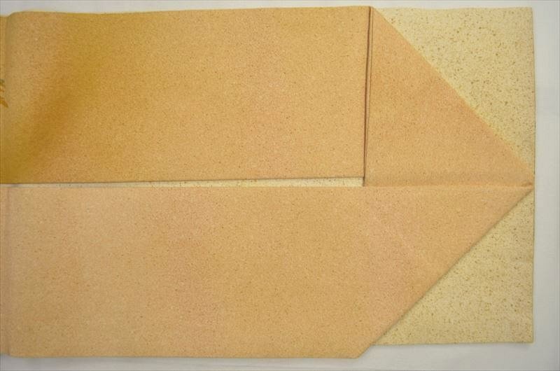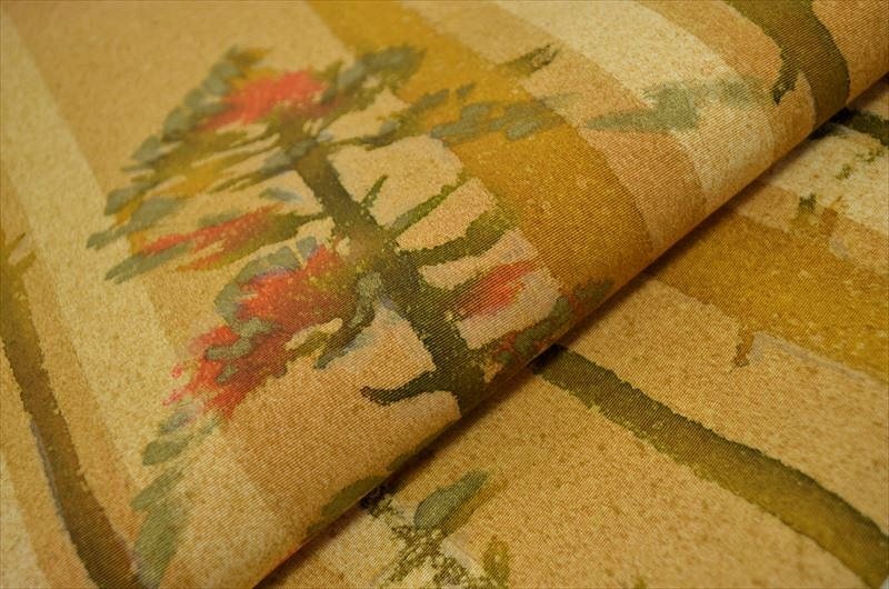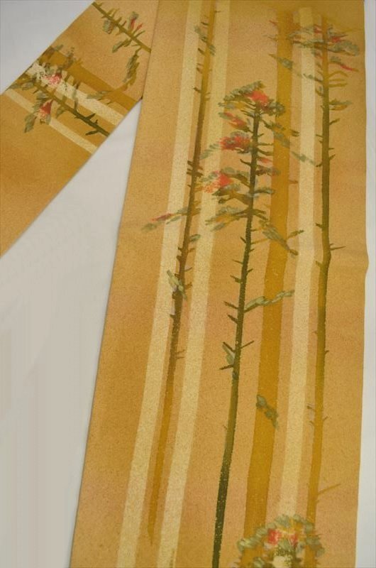 ▲まいど家 N3-02-73 立ち木模様 叩き染 九寸名古屋帯 未使用品