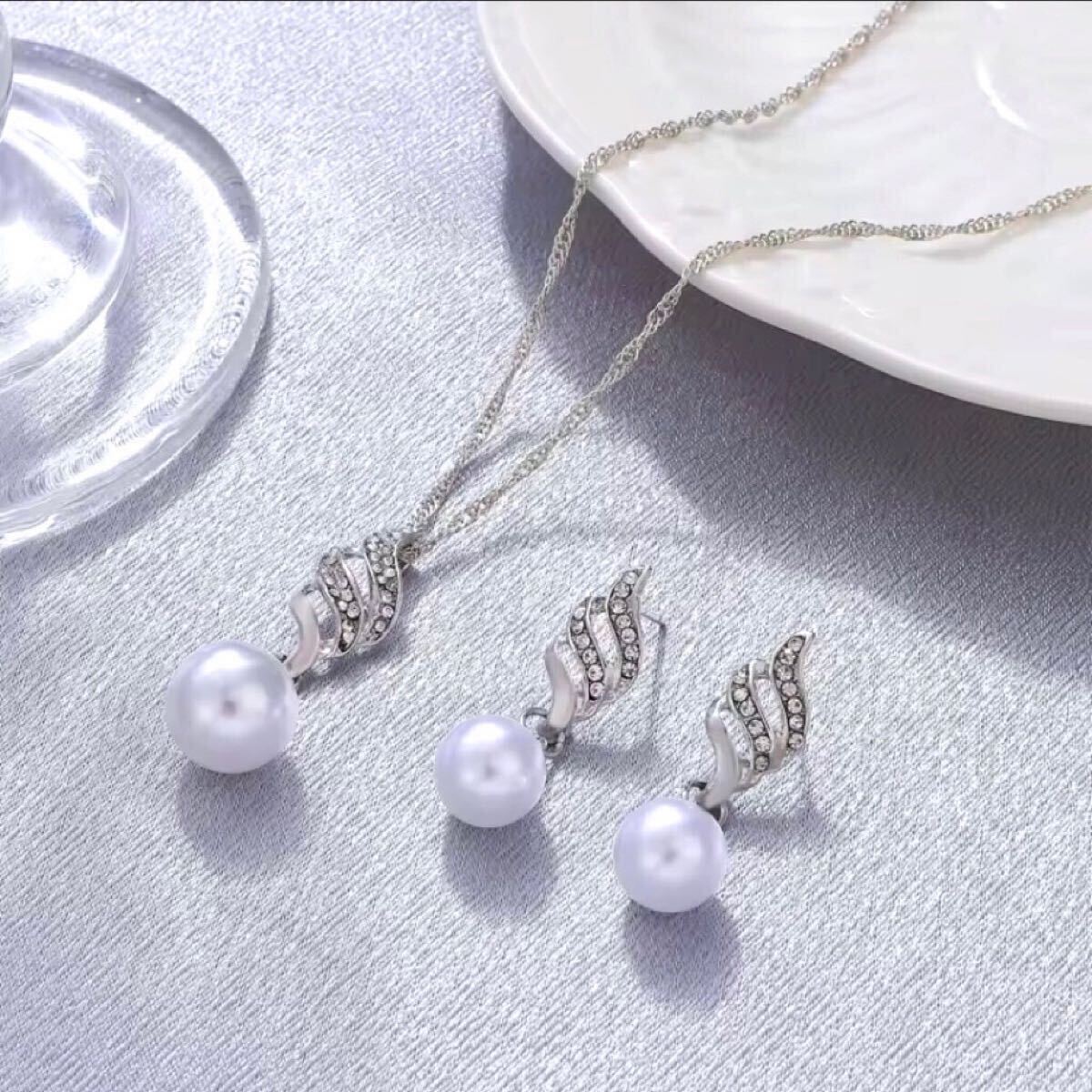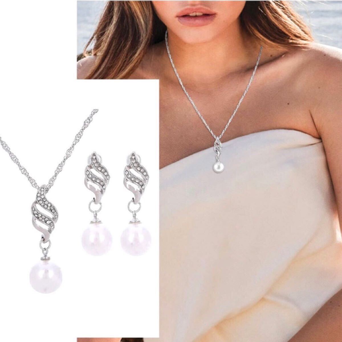 【普段使いにもウエディングにピッタリ! ピアスとネックレスの2点セット】