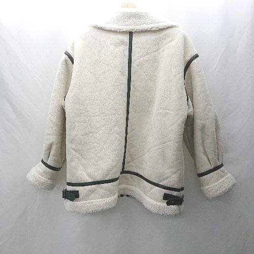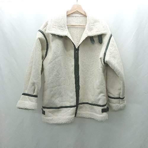 ◇ ⊇ moment+ スウェード×ボアフェイクムートンB-3ジャケット 長袖 ブルゾン サイズ L ホワイト レディース E