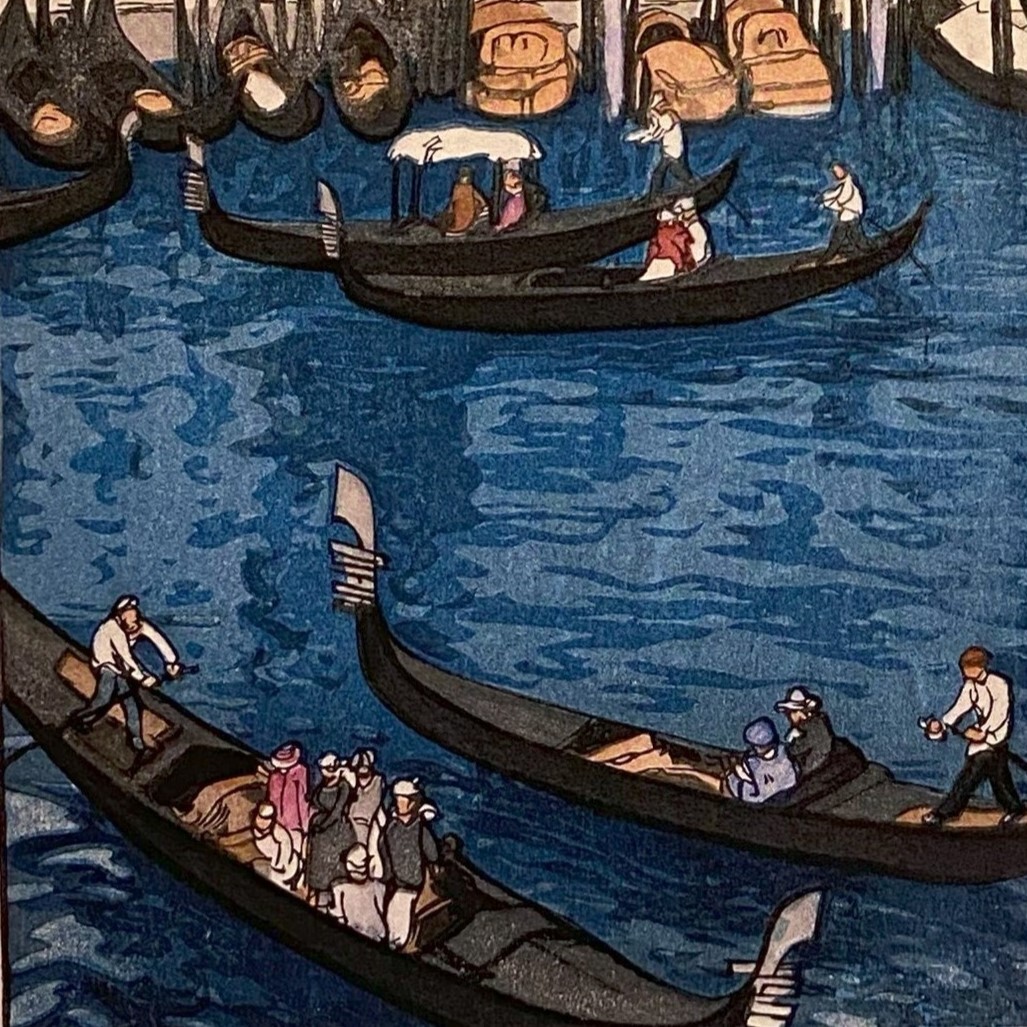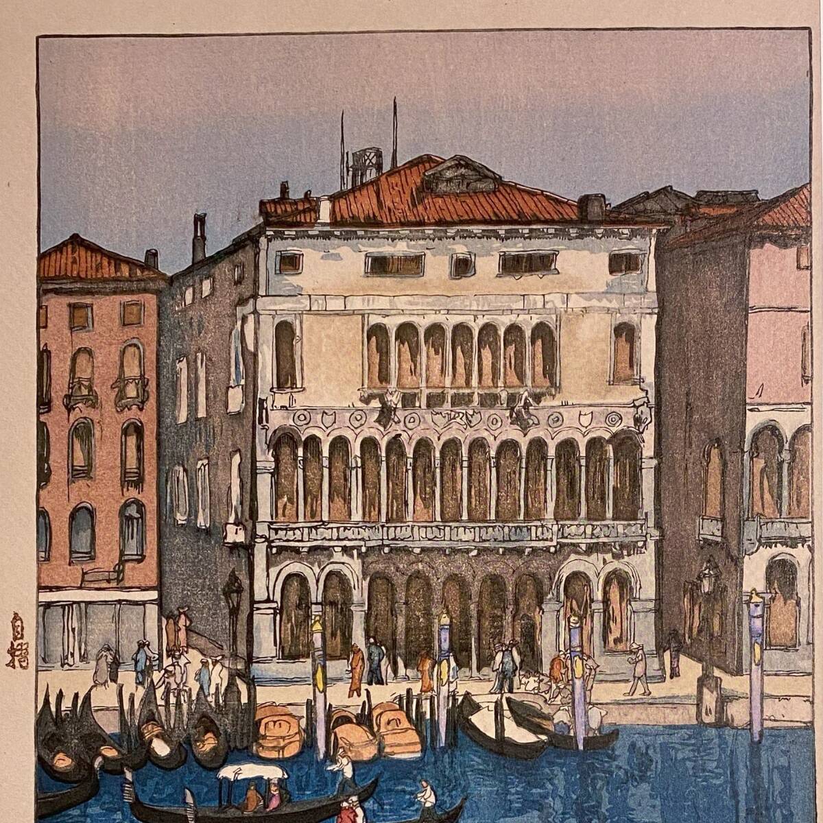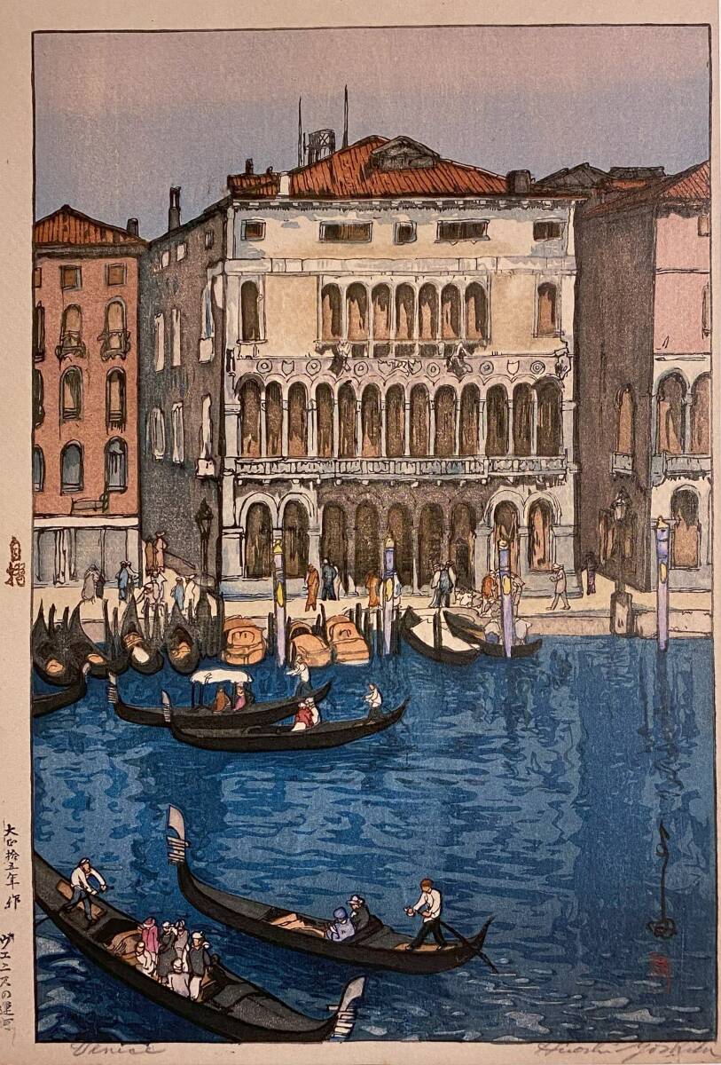 吉田博、〈ヴェニスの運河 欧州シリーズ〉、希少画集画、高級新品額・額装付、状態良好、送料込み