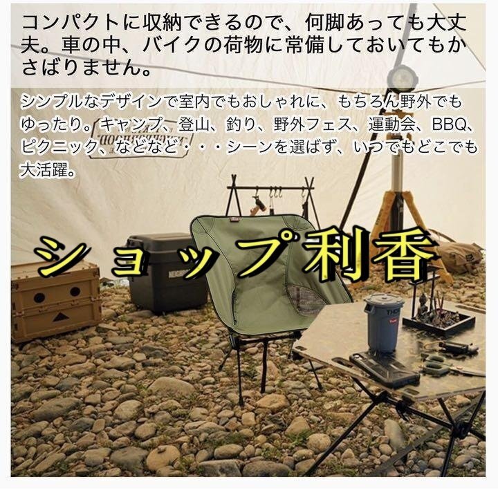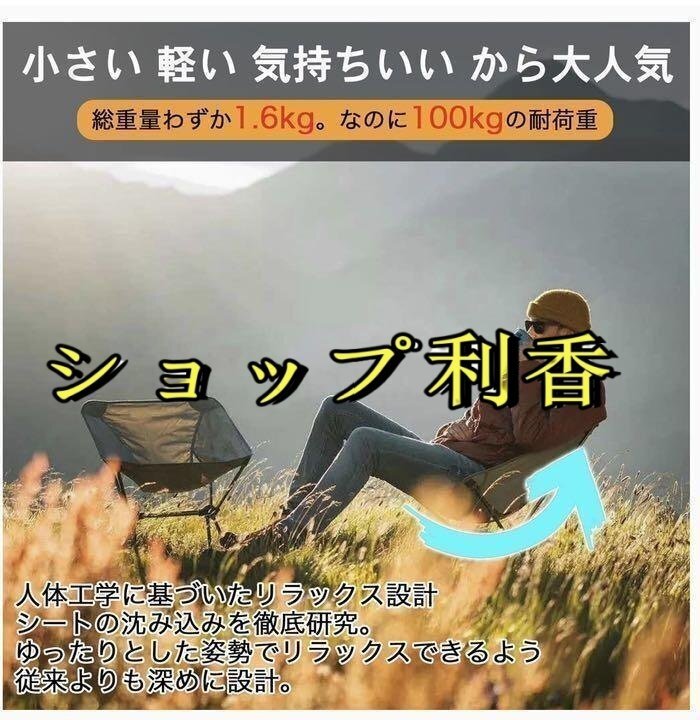 "【注意】:収納袋や細かいところは仕入れるロットによって異なる可能性がございます。ご了承ください。 【軽量】: 小さい 軽い 気持ちいい から大人気。 総重量わずか1.6kg。 耐荷重:100kg。 気軽に持ち歩いて使える、コンパクトなチェア。 【ベストな座り心地】: よりベストな座り心地になるよう素材から見直しました。 優れた通気性の牛津布を使用して、丈夫でしっかりしています。 人体工学に基づいたリラックス設計、シートの沈み込みを徹底研究。 ゆったりとした姿勢でリラックスできるよう、従来よりも深めに設計。 【耐久性が高い】: 差し込み部の素材と縫製工程の見直しにより、強度?耐久性のUPにも成功。 鉄骨の構造はより安定していて、荷重が大きく、割れにくいです。 【組み立てが簡単】: 収納袋から出して束ねてあるゴムを外せば、骨組みに内臓されているワイヤーゴムが引っ張りあうので、簡単に組み上がります。 【収納袋付属】:専用収納袋がついているので、収納スペースを食わず持ち運びに便利で楽です。"