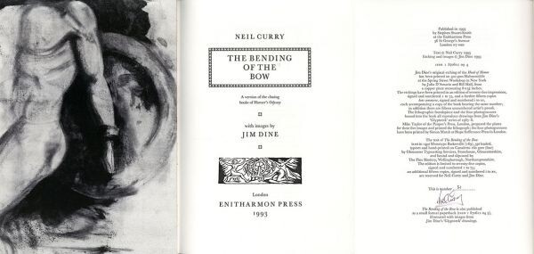 ジム・ダイン The Bending Of The Bow 銅版画1葉(サイン入 20×14) 限75 リトグラフ扉絵及びフォトグラヴィエール口絵4図