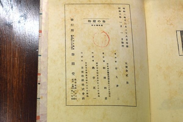 「春のおくりもの」 春陽堂 初版 彩色木版口絵及び扉絵各1図 函 蔵書票貼付 昭和3年刊 Yumeji Takehisa
