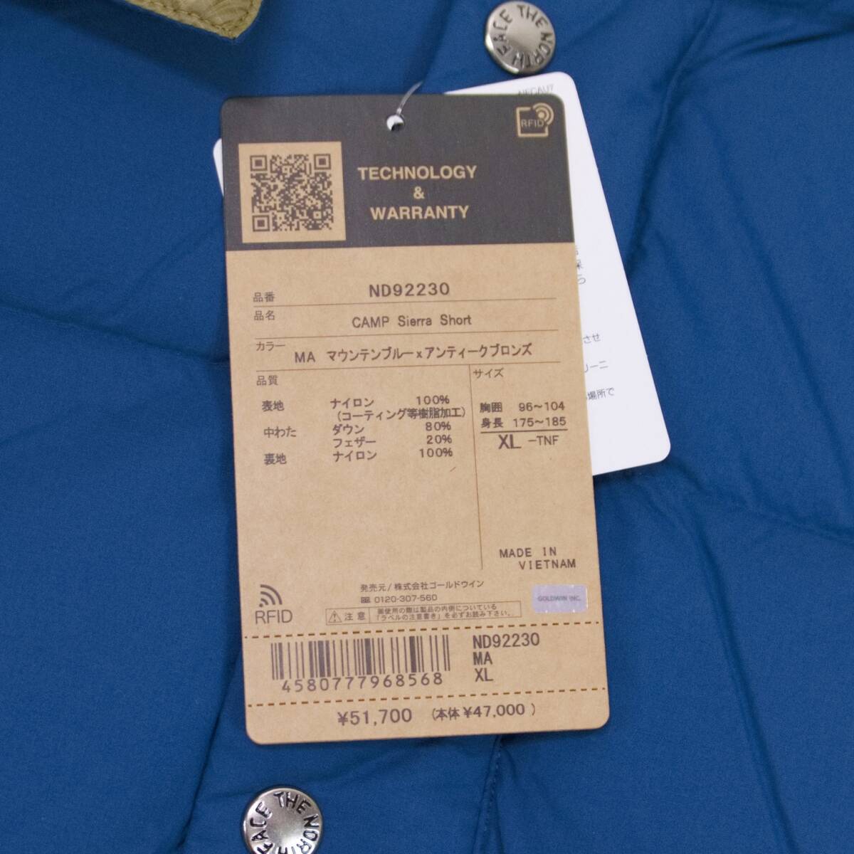 即決☆ノースフェイス キャンプシエラショート MA/XLサイズ ダウン ジャケット ブルー 青 送料込み ND92230 国内正規品 防寒