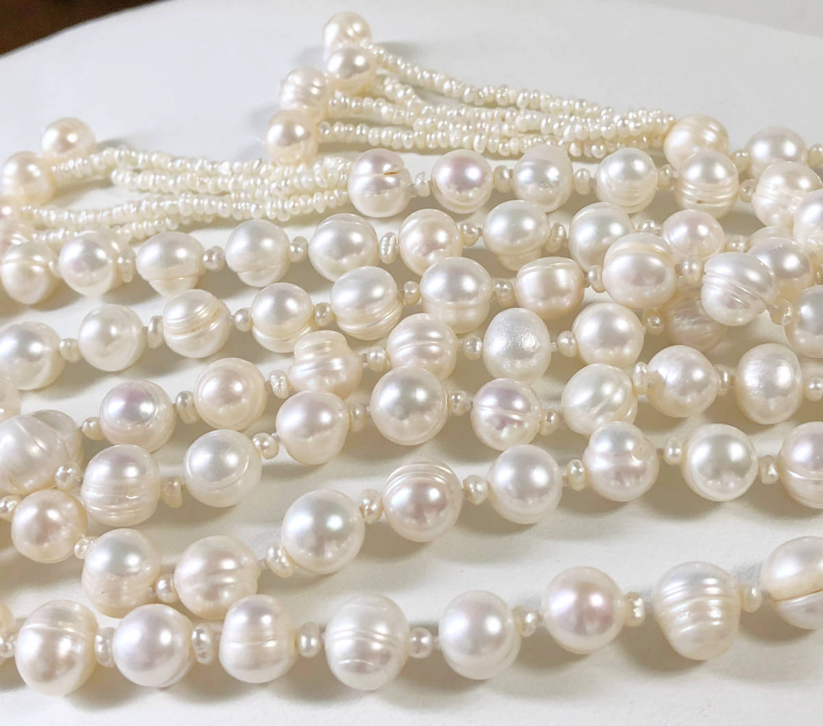 天然淡水真珠を使用したお洒落なロングラリットです。