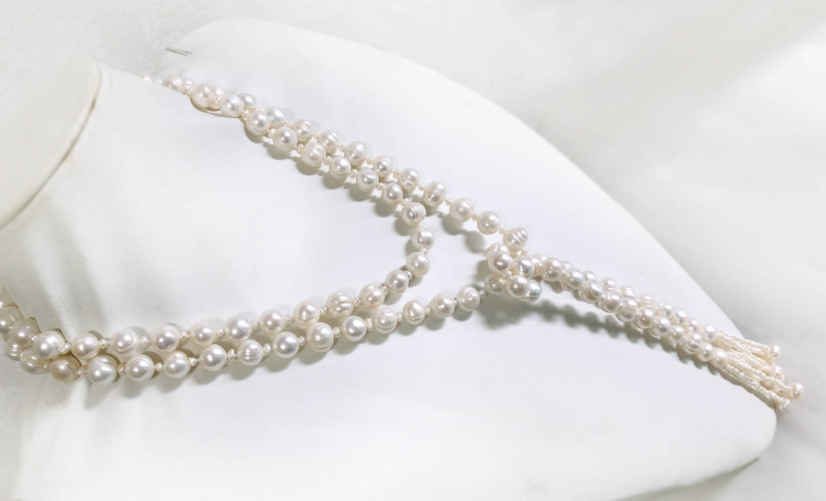 約130cmの長さで、二重に巻いたり、ロングネックレスにしたり、