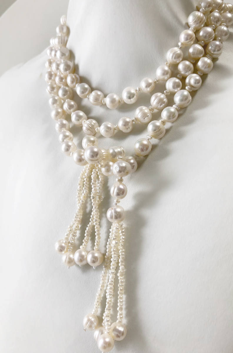 真珠層100%●天然淡水真珠のラリエットネックレス●ホワイト●130cm
