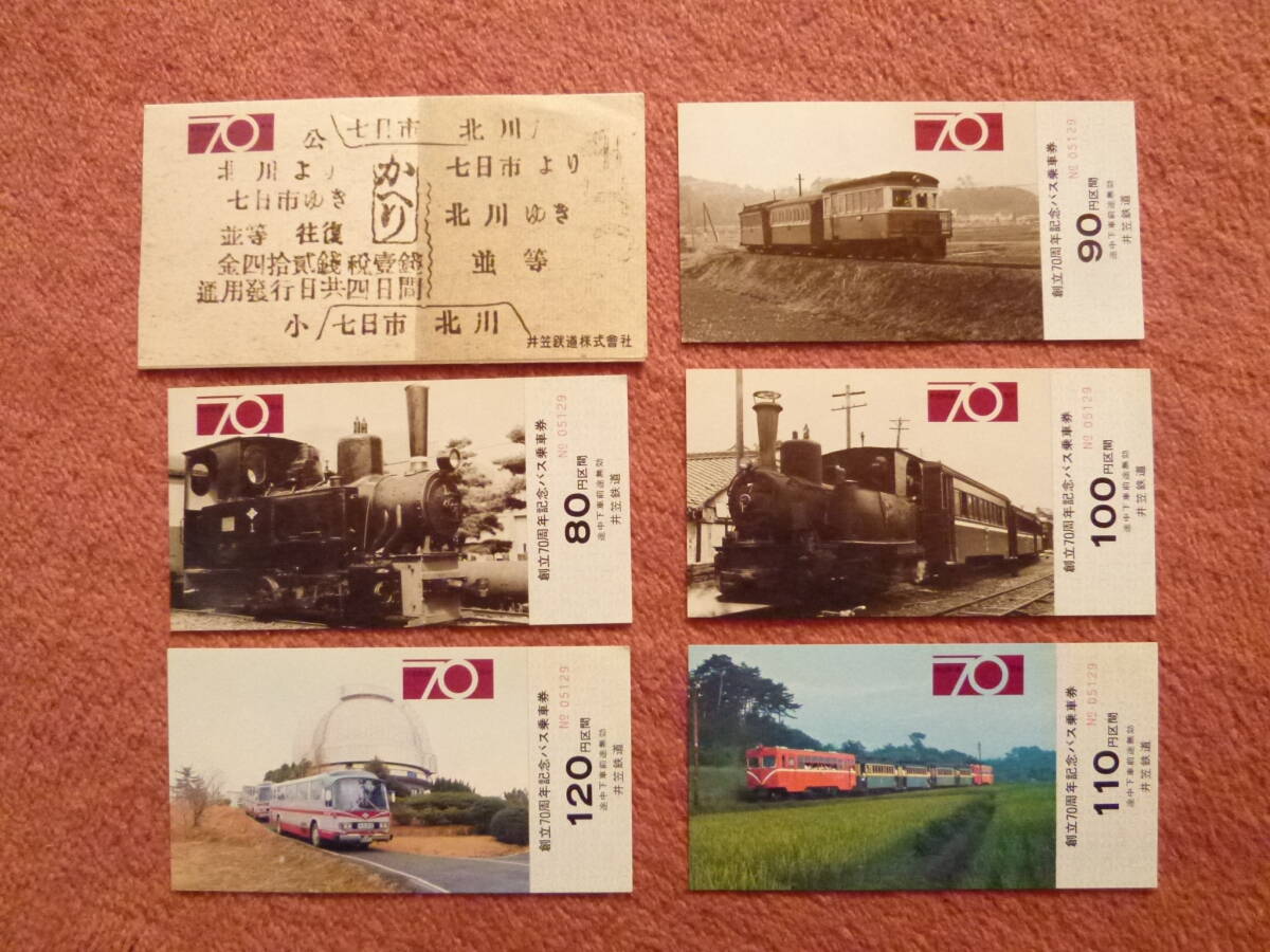 井笠鉄道創立70周年記念バス乗車券5枚組です。