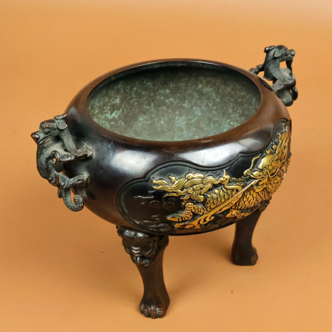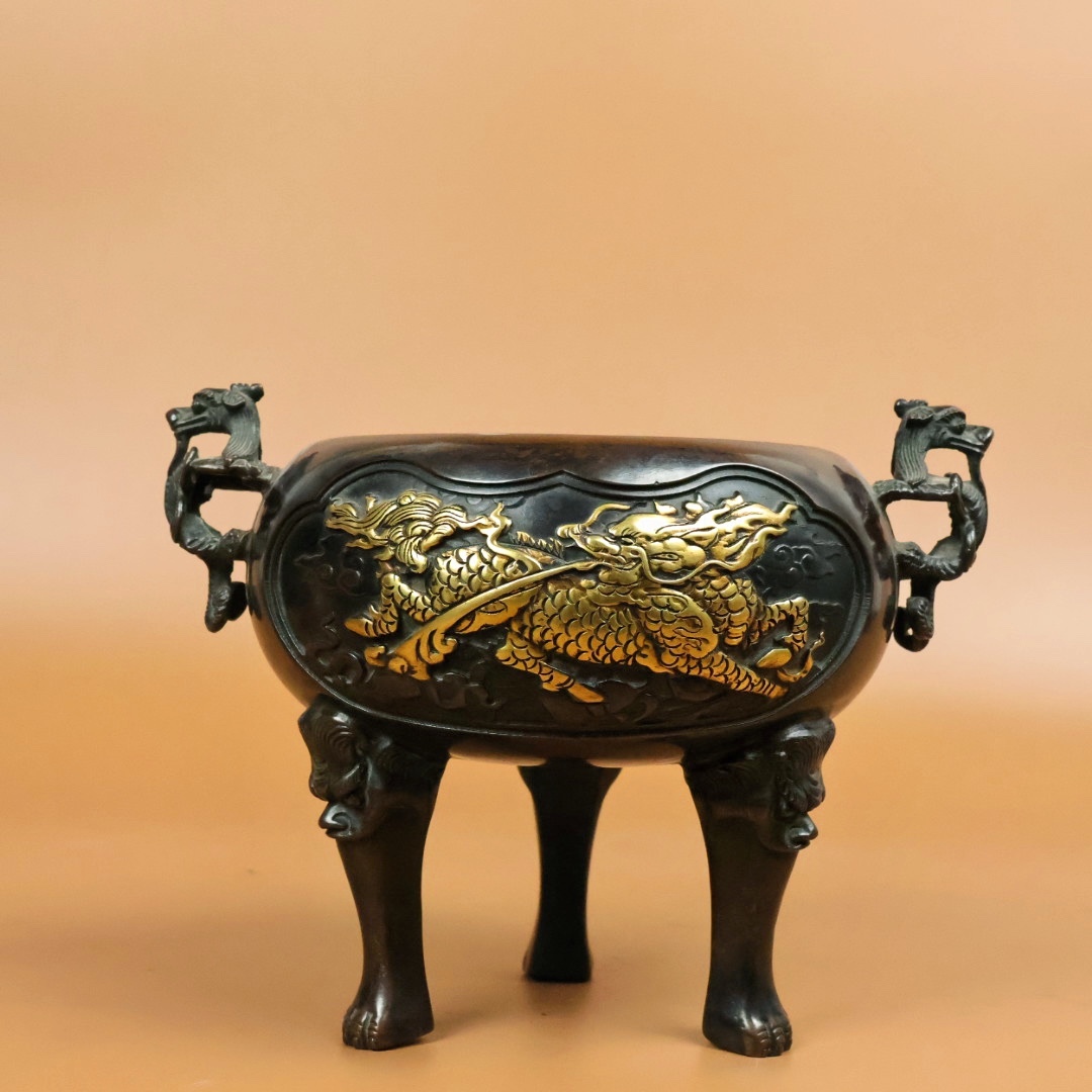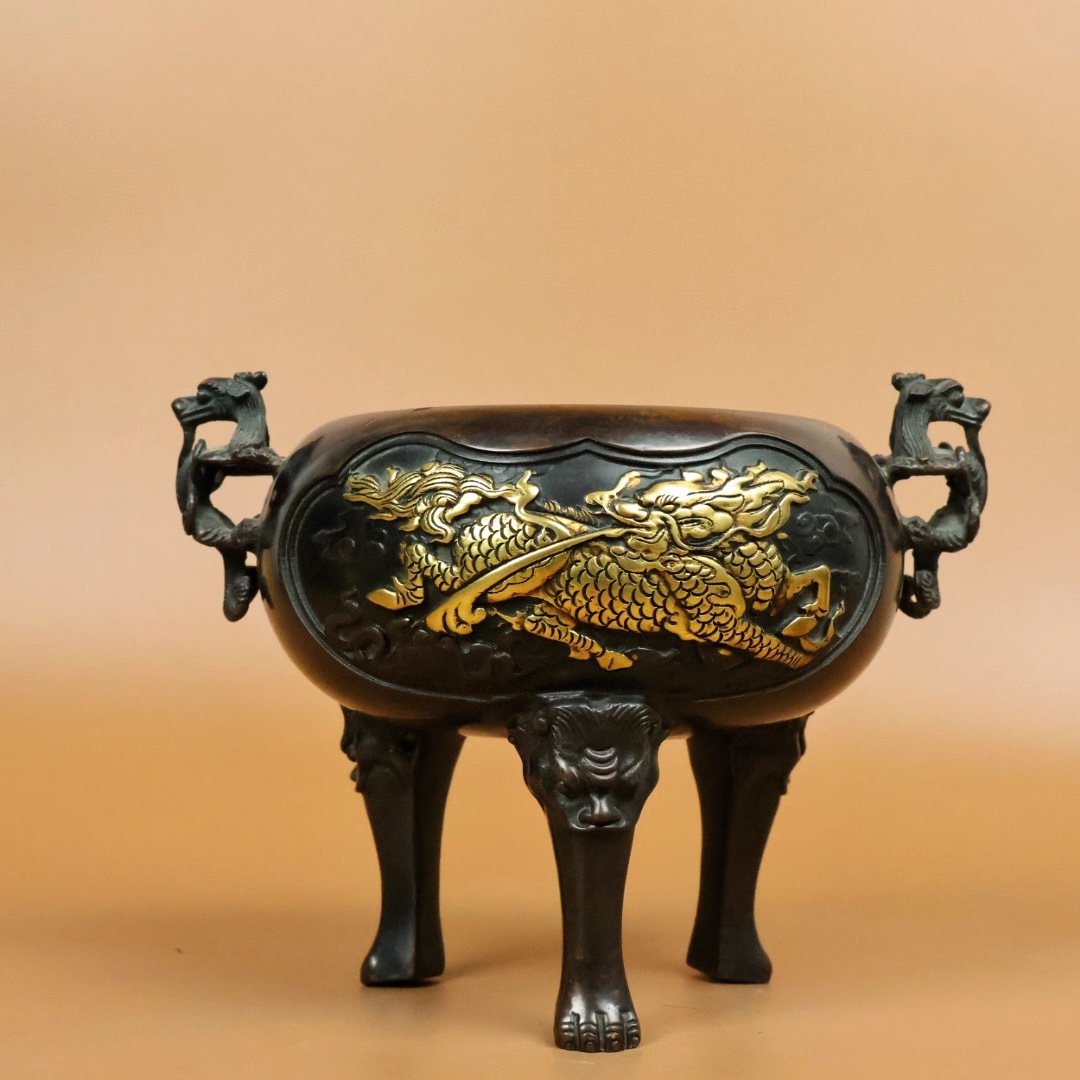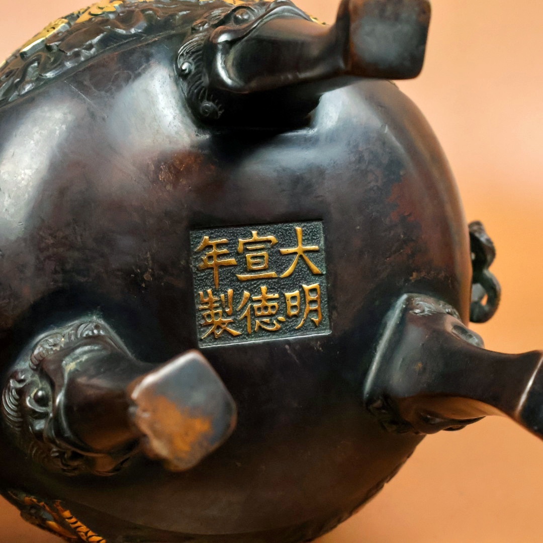 『明代・大明宣德年製款・宮廷御製・紫銅流金彫・獣耳香炉・神獣三足炉・香道』極細工・時代物・東洋彫刻・古賞物・中国古玩・中国古美術