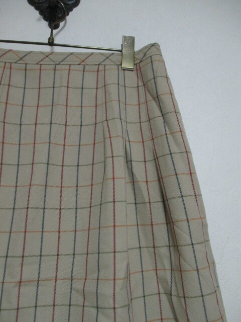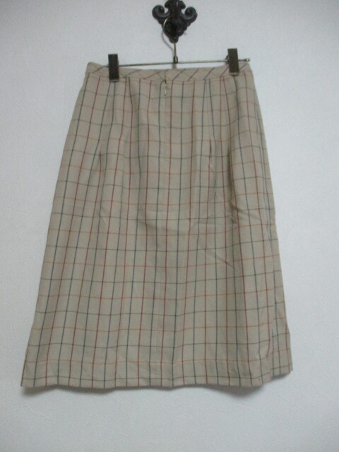 商品紹介 | チェック柄の膝下丈スカートです。 形はタイトです。 地色はベージュで、ボルドーっぽい赤、ネイビー、カーキ、オレンジの 細いラインが入っています。 《素材》 表地:ポリエステル65% レーヨン35% 裏地:ポリエステル100% |